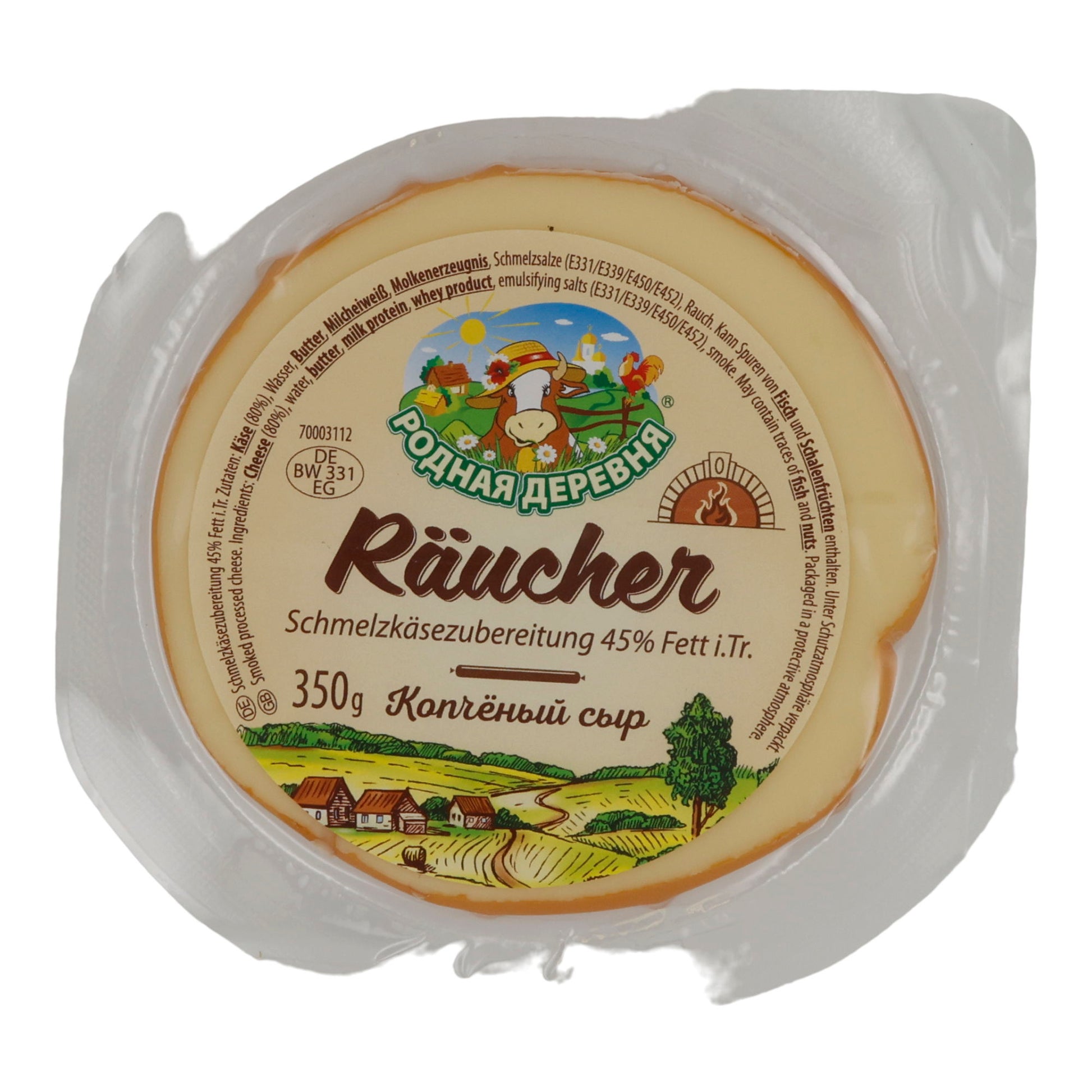 Räucherkäse Rodnaya Derevnya | Schmelzkäse | Aromatisch | 350 g bietet einen unvergleichlichen Geschmack, der Ihre Sinne verwöhnt.