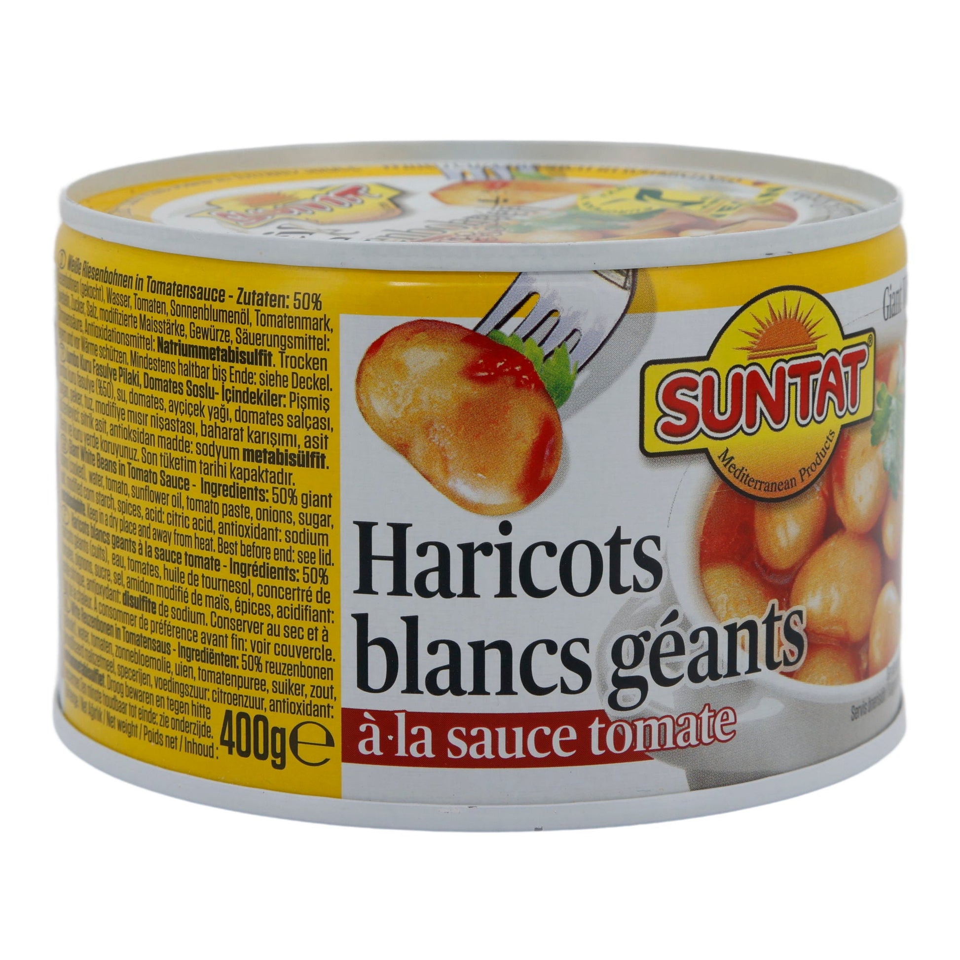 Riesenbohnen Suntat in Sauce sind verzehrfertig und können direkt aus der Dose kalt oder warm serviert werden. Einfach den Inhalt in einen Topf geben und bei mittlerer Hitze erwärmen oder kalt in Salaten verwenden.