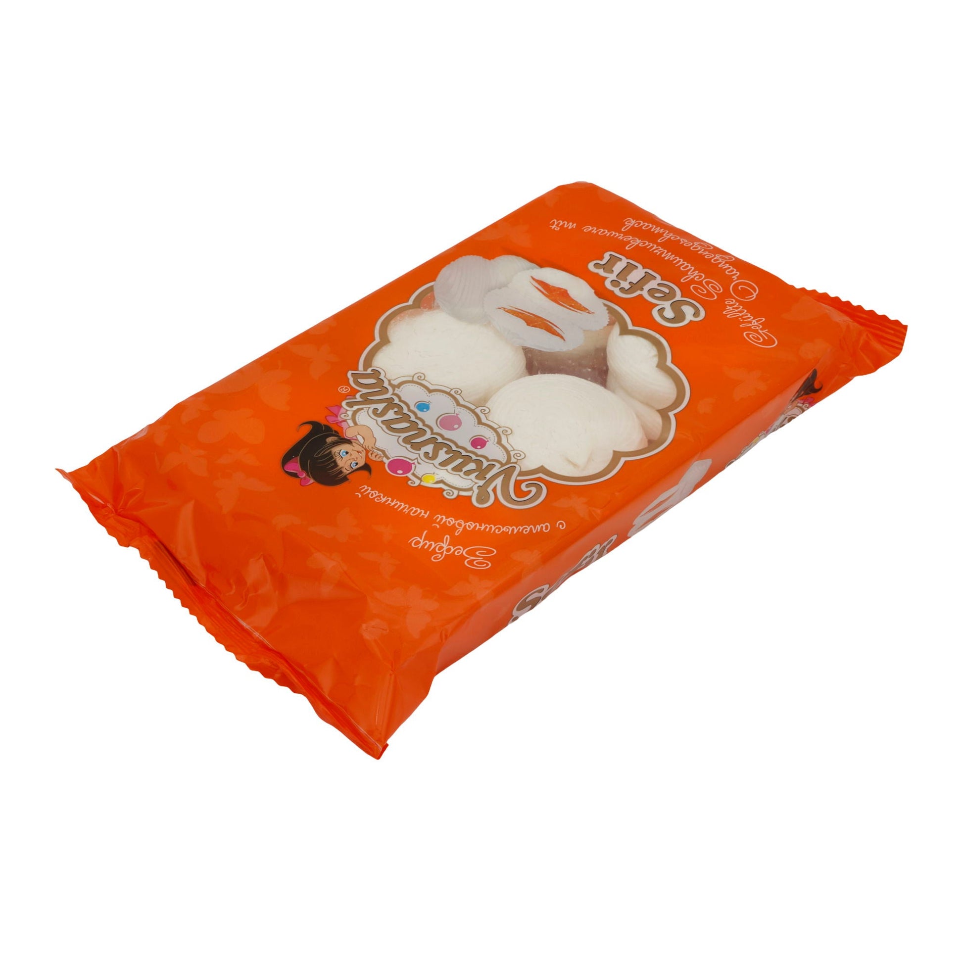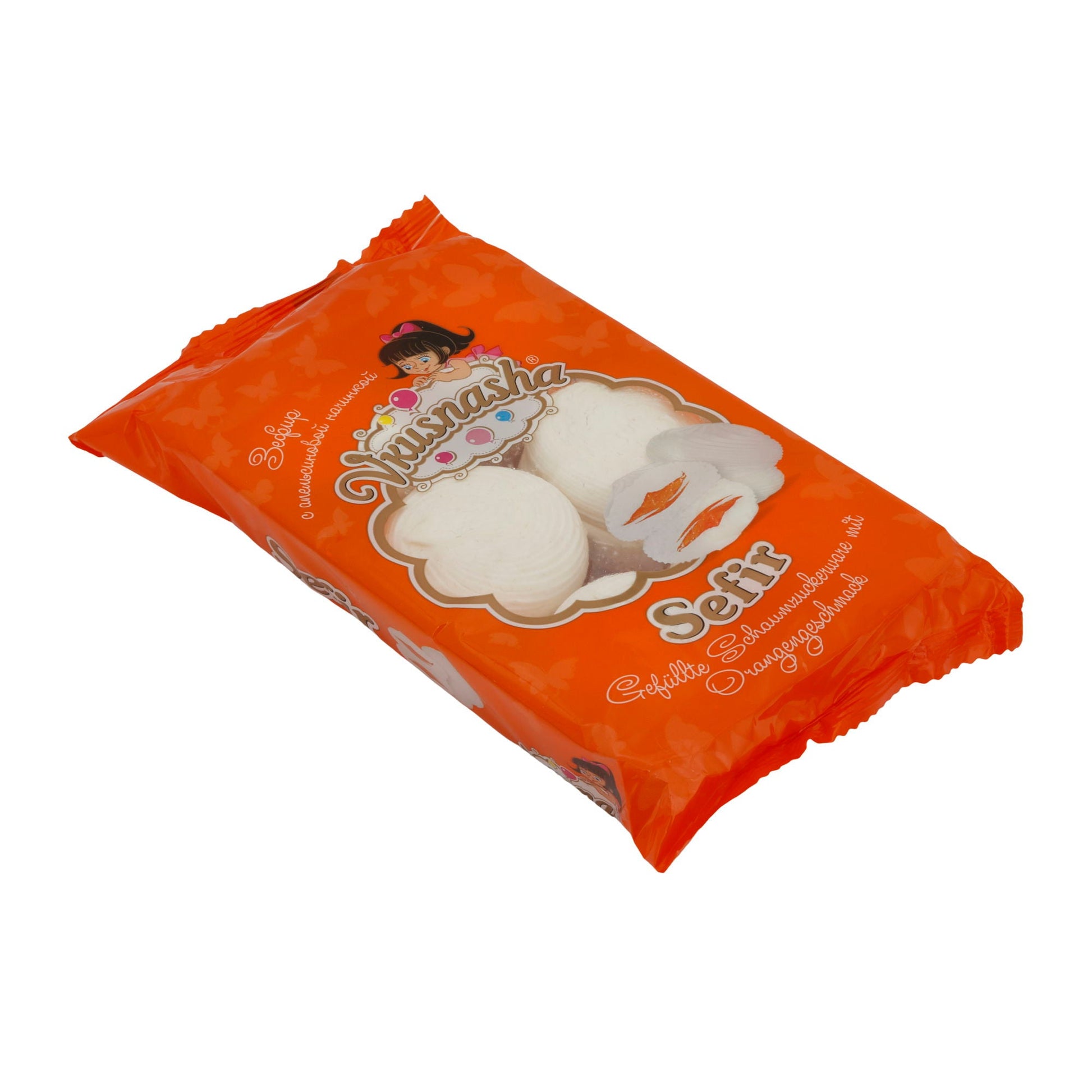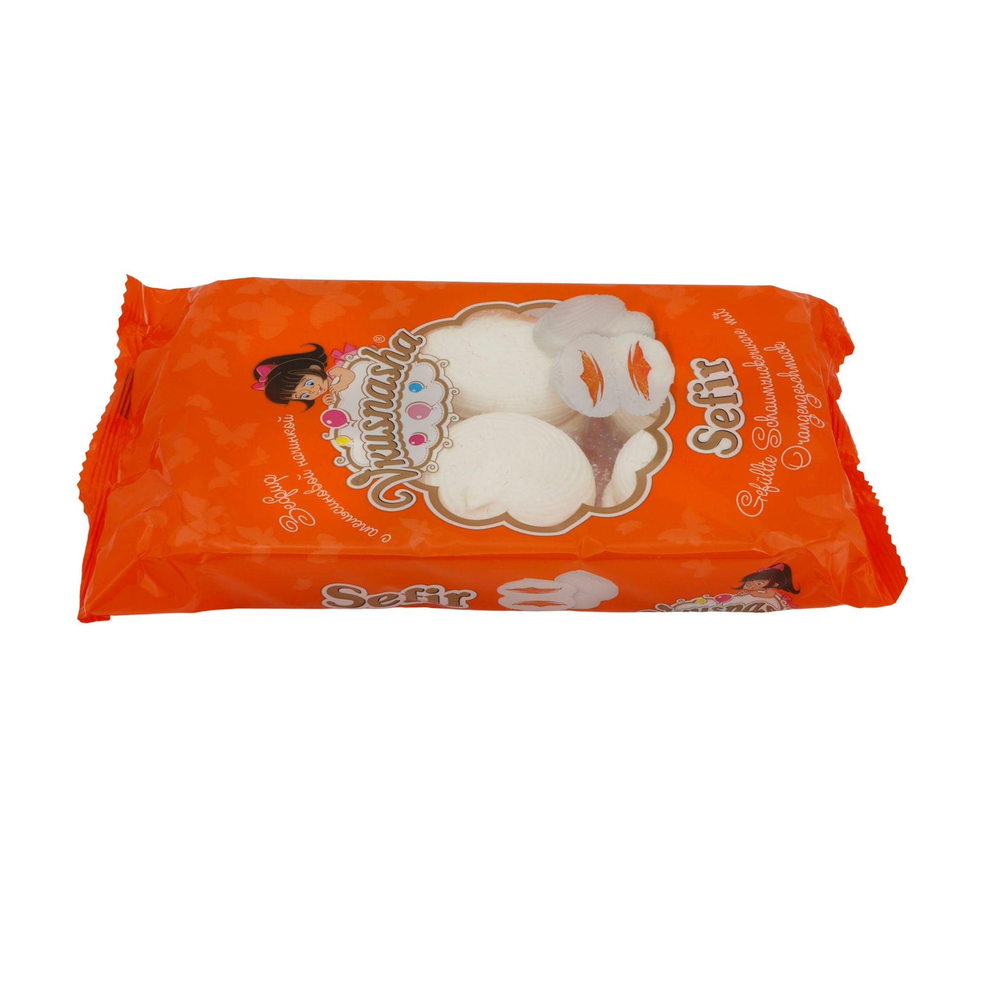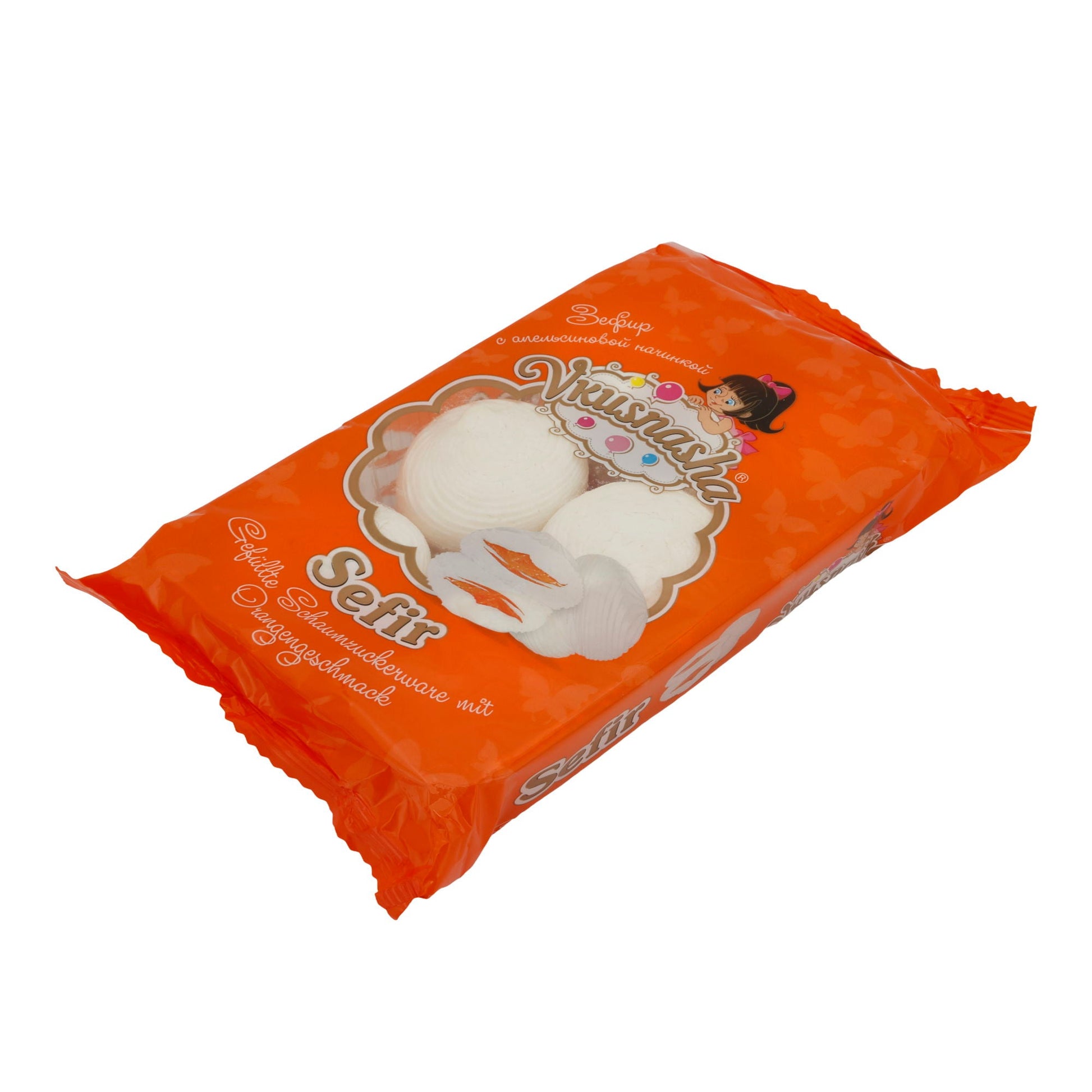 Sefir Vkusnasha ist eine gefüllte Schaumzuckerware mit Orangenaroma, die direkt verzehrt werden kann. Sie eignet sich hervorragend als Süßigkeit zum Kaffee oder Tee, als Dessert oder als Bestandteil eines Buffets.