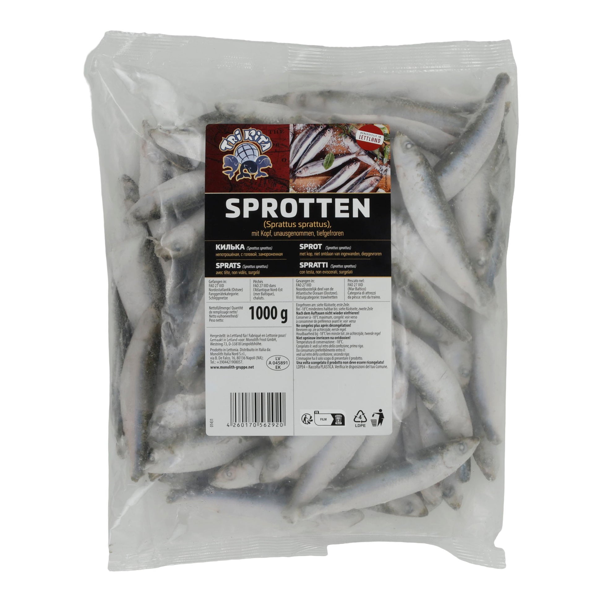 Sprotten Top Fish | Mit Kopf | Ganze, tiefgefroren, Wildfang | 1 kg