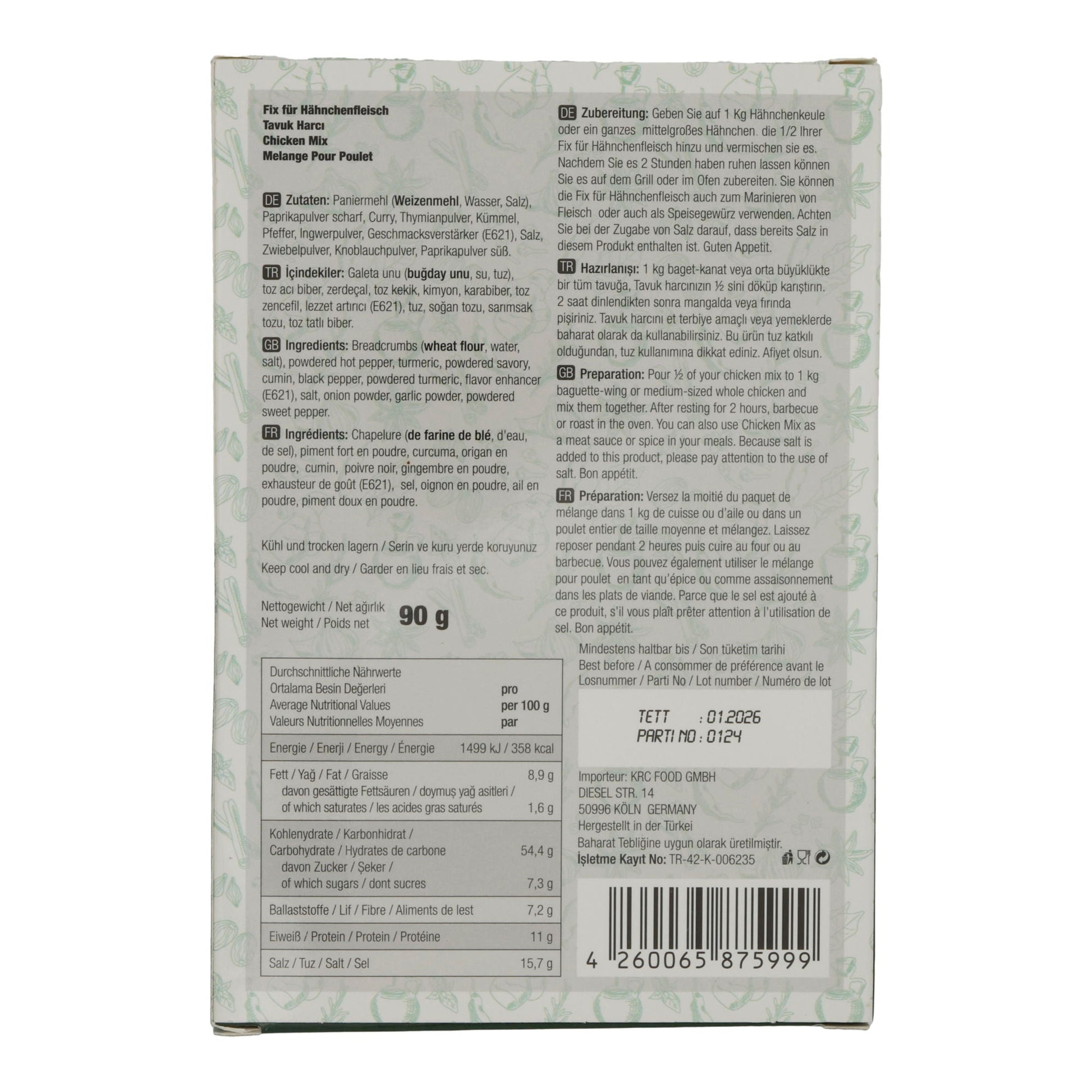 • Speziell abgestimmte Gewürzmischung für Hähnchenfleisch