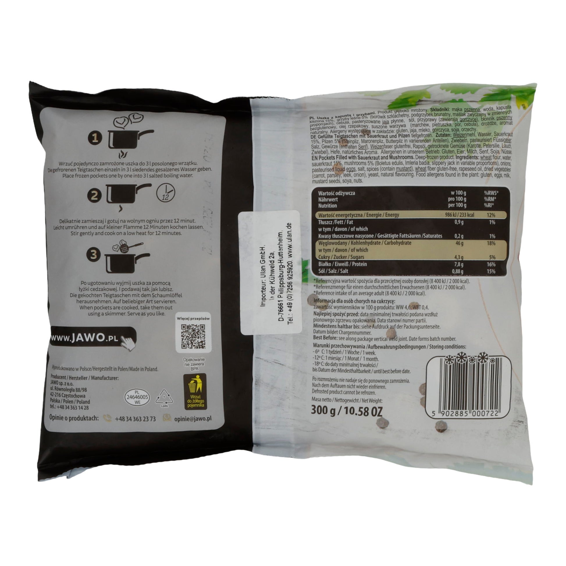 Teigtaschen Jawo | Uszka mit Sauerkraut & Pilzen | Polnisch, ohne Konservierungsstoffe | 300 g bietet authentischen Geschmack der polnischen Küche.