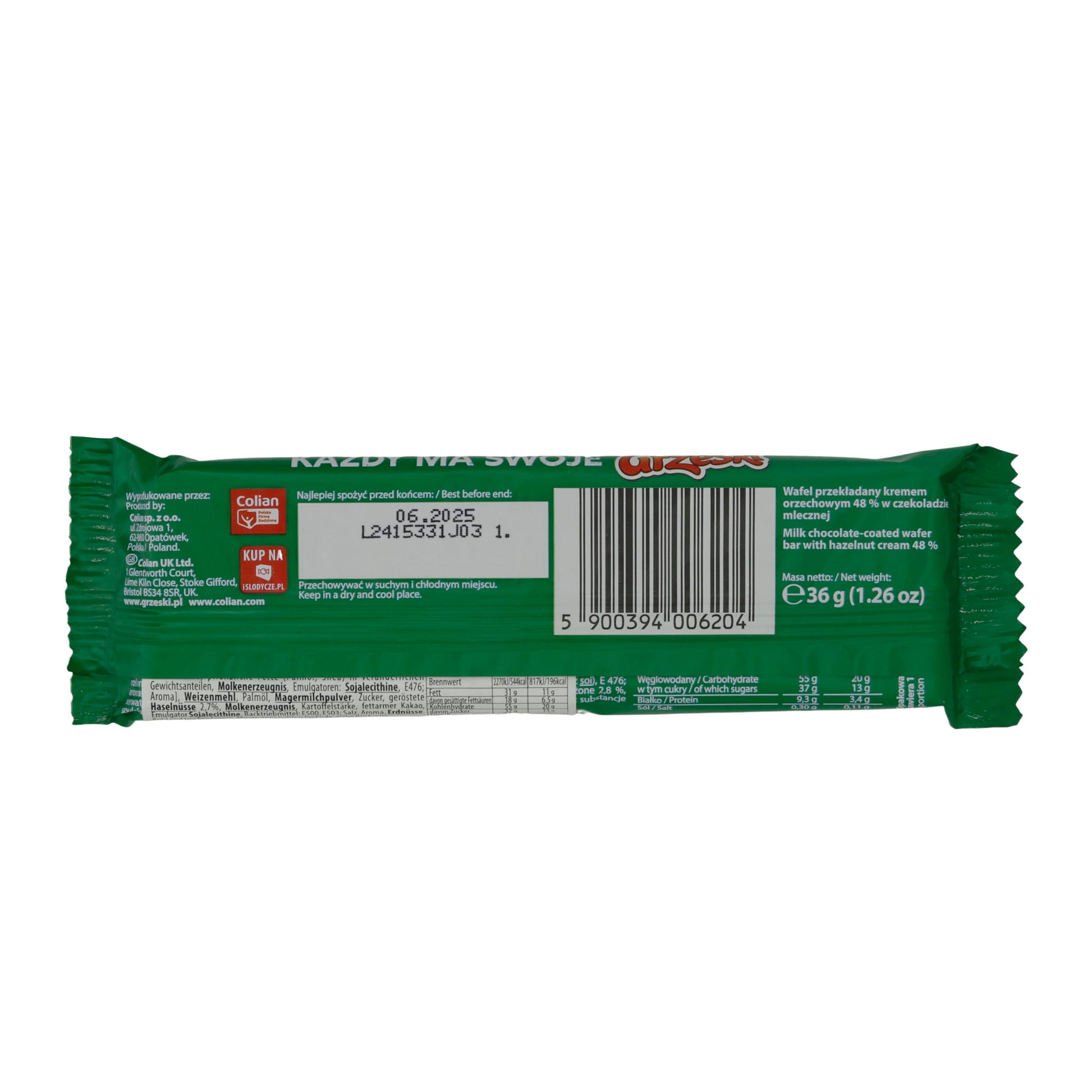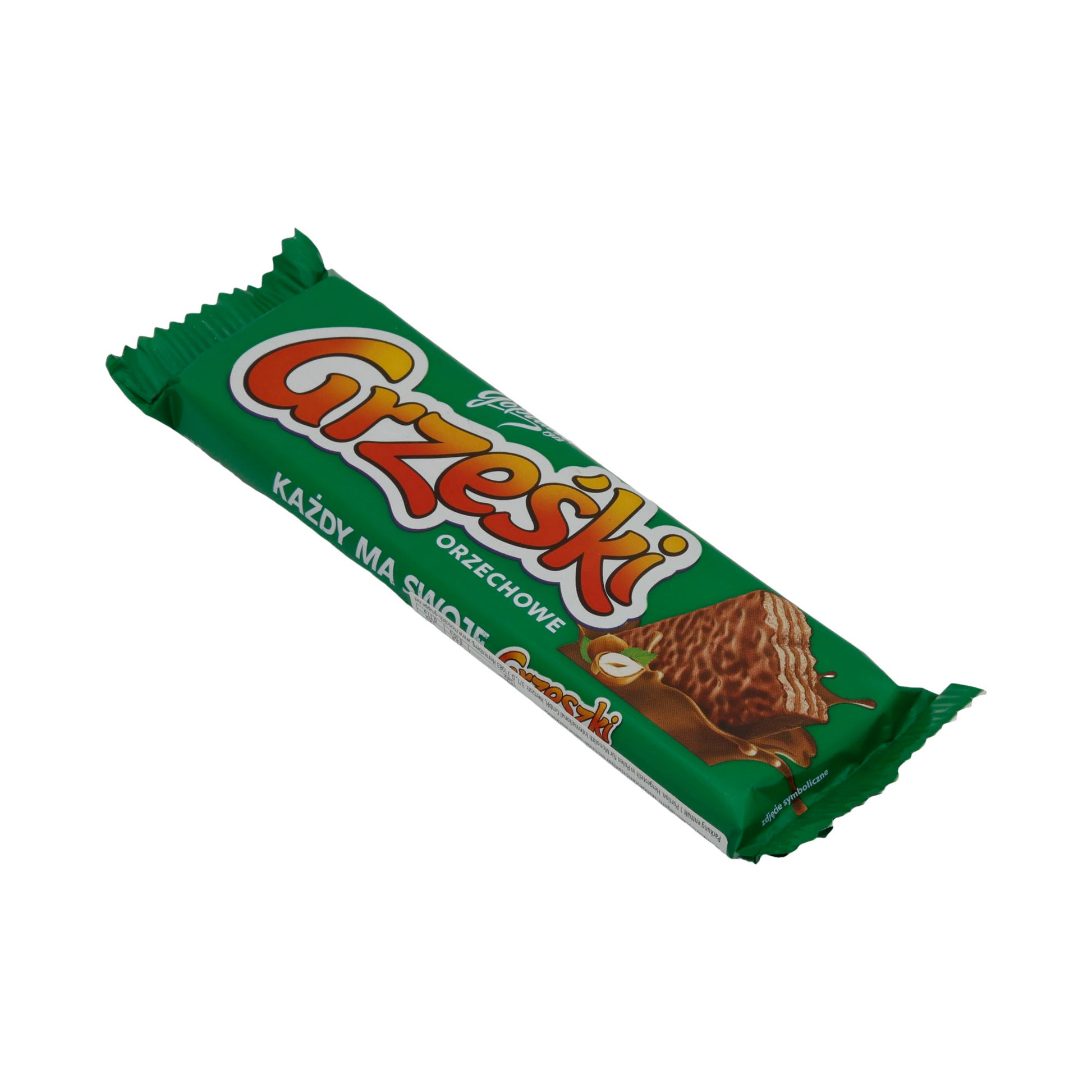 Waffel Goplana Grześki | Orzechowe Waffel | Knusprig, mit Haselnusscreme und Milchschokolade | 36 g bietet knusprigen Genuss mit reichhaltiger Haselnusscreme und zarter Milchschokolade.