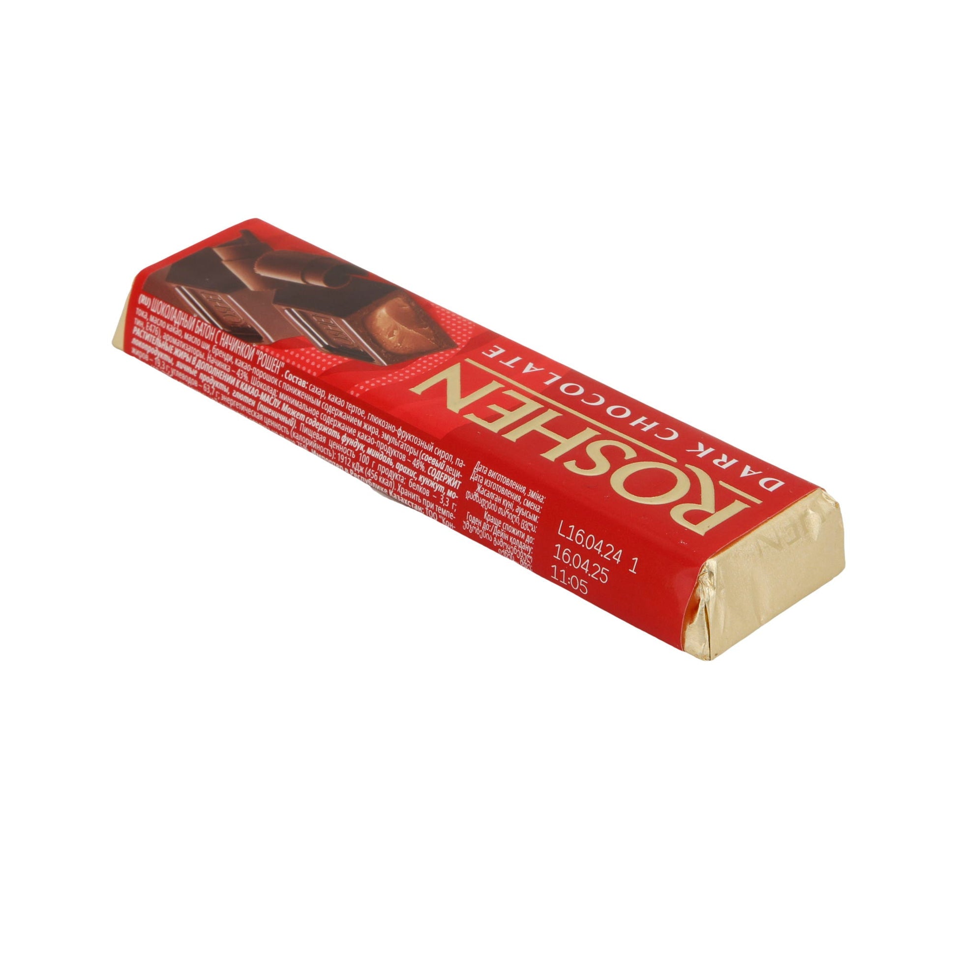 Der Zartbitter-Schokoladenriegel Roshen zeichnet sich durch seinen intensiven, herben Schokoladengeschmack aus, der durch einen Kakaoanteil von mindestens 48 % erreicht wird. Die cremige Füllung ergänzt den Geschmack perfekt und sorgt für ein einzigartiges Genusserlebnis.