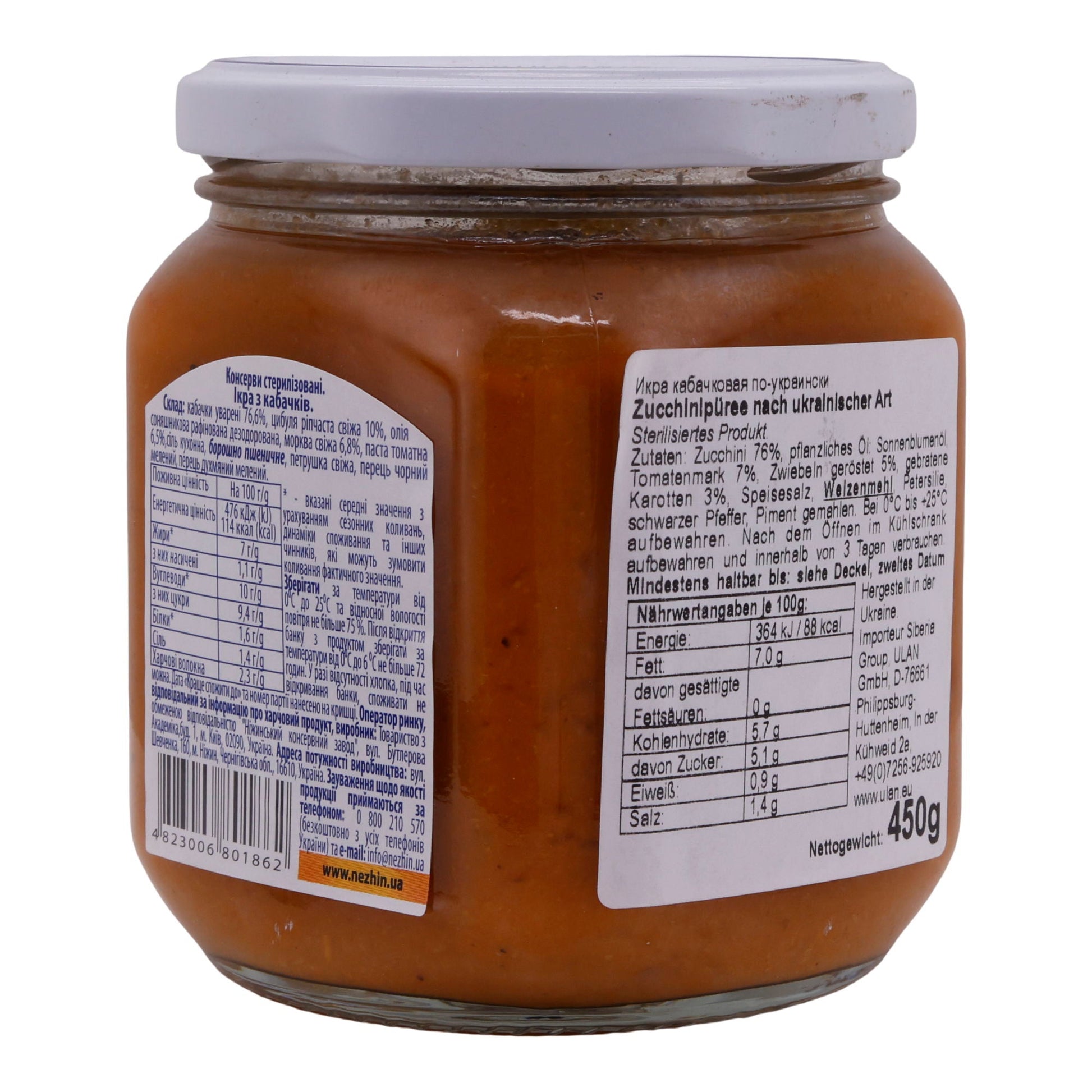 Zucchinipüree Nizhin eignet sich ideal als Brotaufstrich, Beilage zu Fleisch- und Fischgerichten oder als Dip zu Crackern und Gemüsesticks. Es kann auch als Füllung für Pfannkuchen oder Blätterteig verwendet werden.