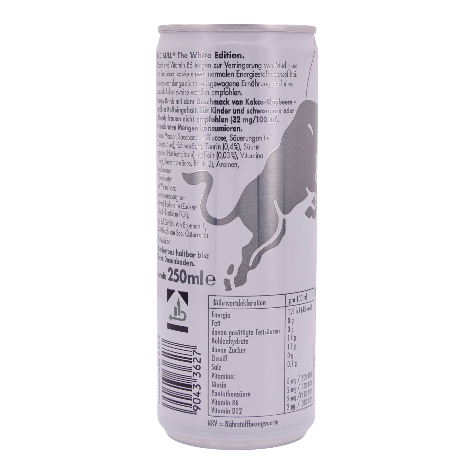 Red Bull The White Edition Kokos-Blaubeere ist Teil der internationalen Red Bull Editions, die saisonale und exotische Geschmacksrichtungen bieten. Diese Edition bringt ein sommerliches Gefühl mit einem Hauch von tropischer Exotik.