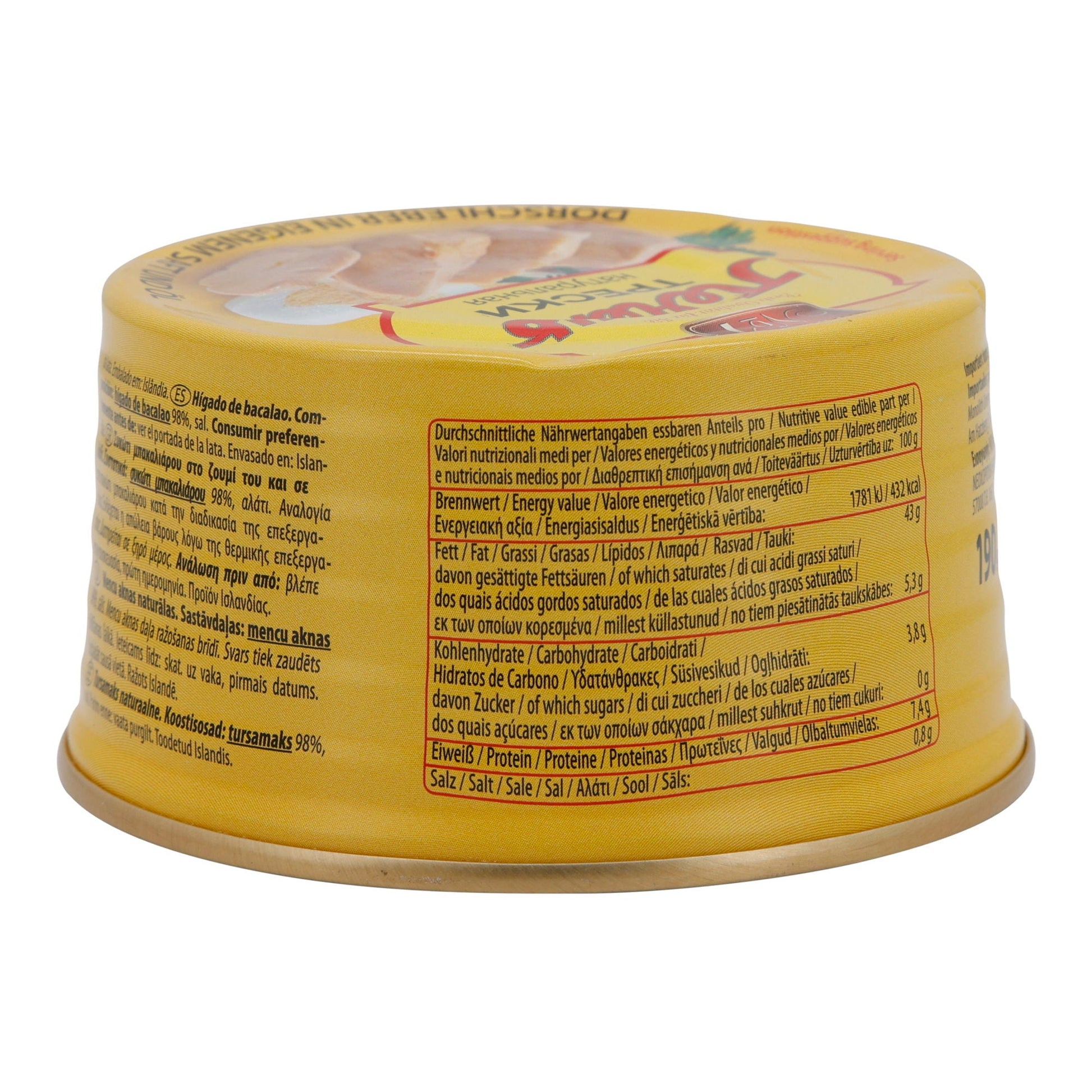 Fischdelikatesse | Dorschleber | In eigenem Saft & Öl, Island | 190 g bietet Ihnen eine exquisite Geschmackserfahrung direkt aus den Gewässern Islands.