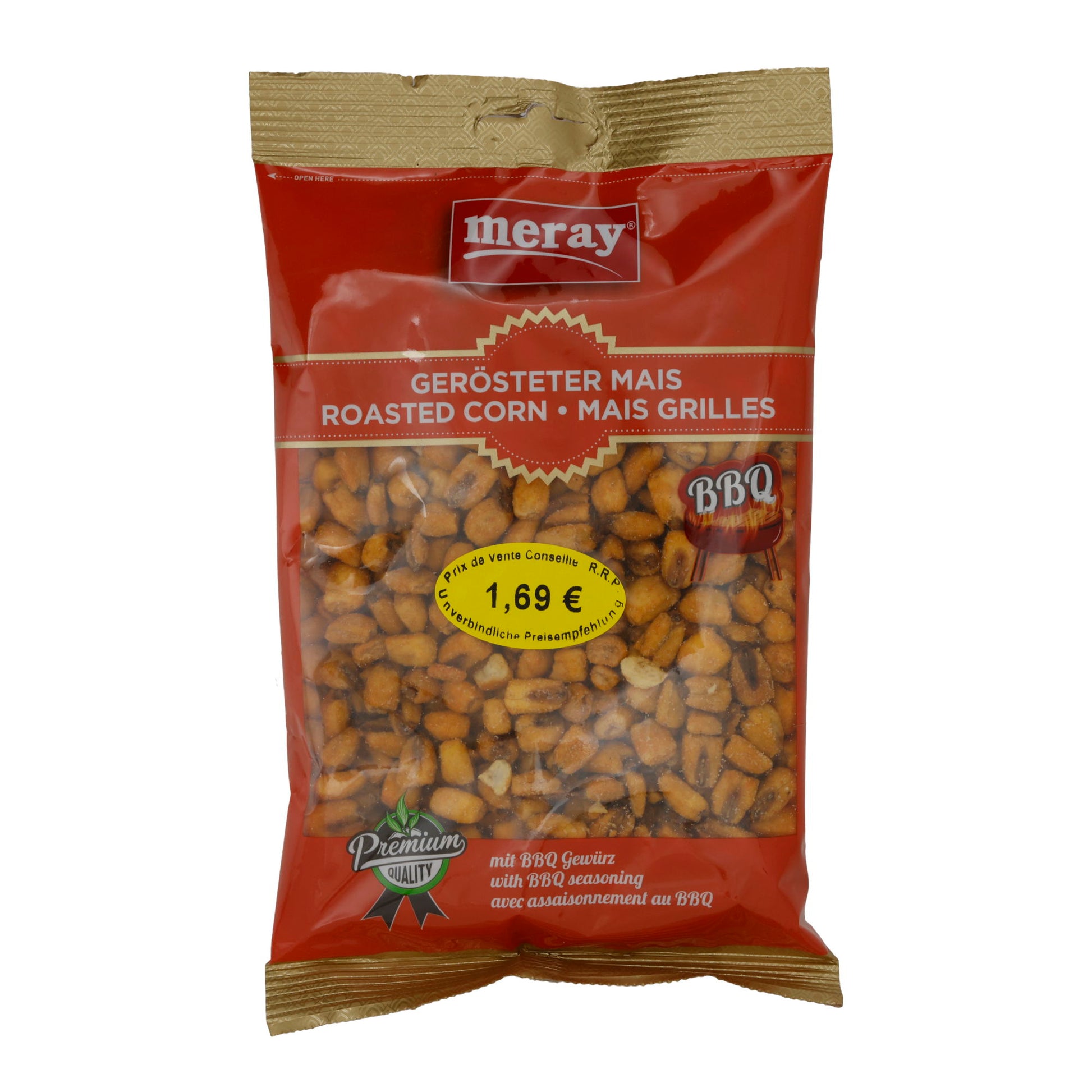 Gerösteter Mais BBQ Meray | Knuspriger Snack | Mit BBQ-Gewürz | 150 g bietet Ihnen den ultimativen Knabberspaß mit einem Hauch von BBQ-Aroma.