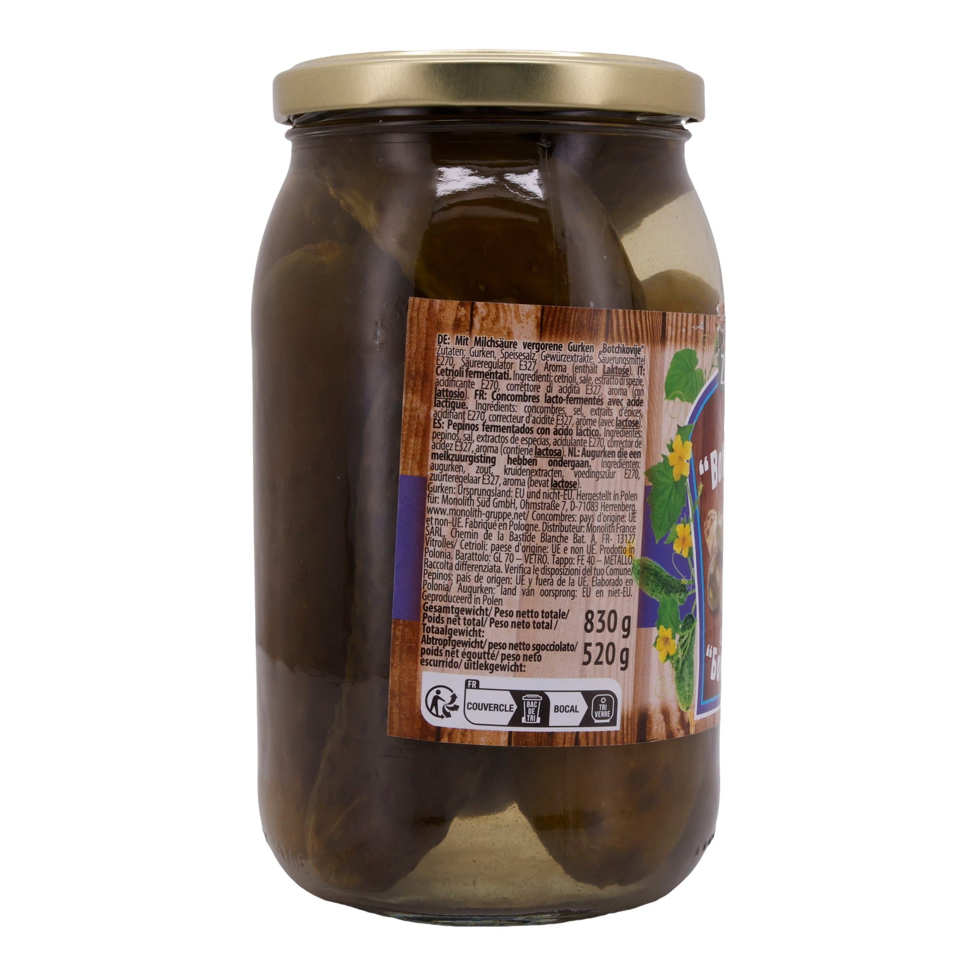 Diese Gurken sind traditionell milchsauer vergoren, was ihnen ein einzigartig würziges Aroma verleiht. Sie werden ohne Essig in einer Salzlake eingelegt, was ihren kräftigen Geschmack und ihre knackige Konsistenz bewahrt.