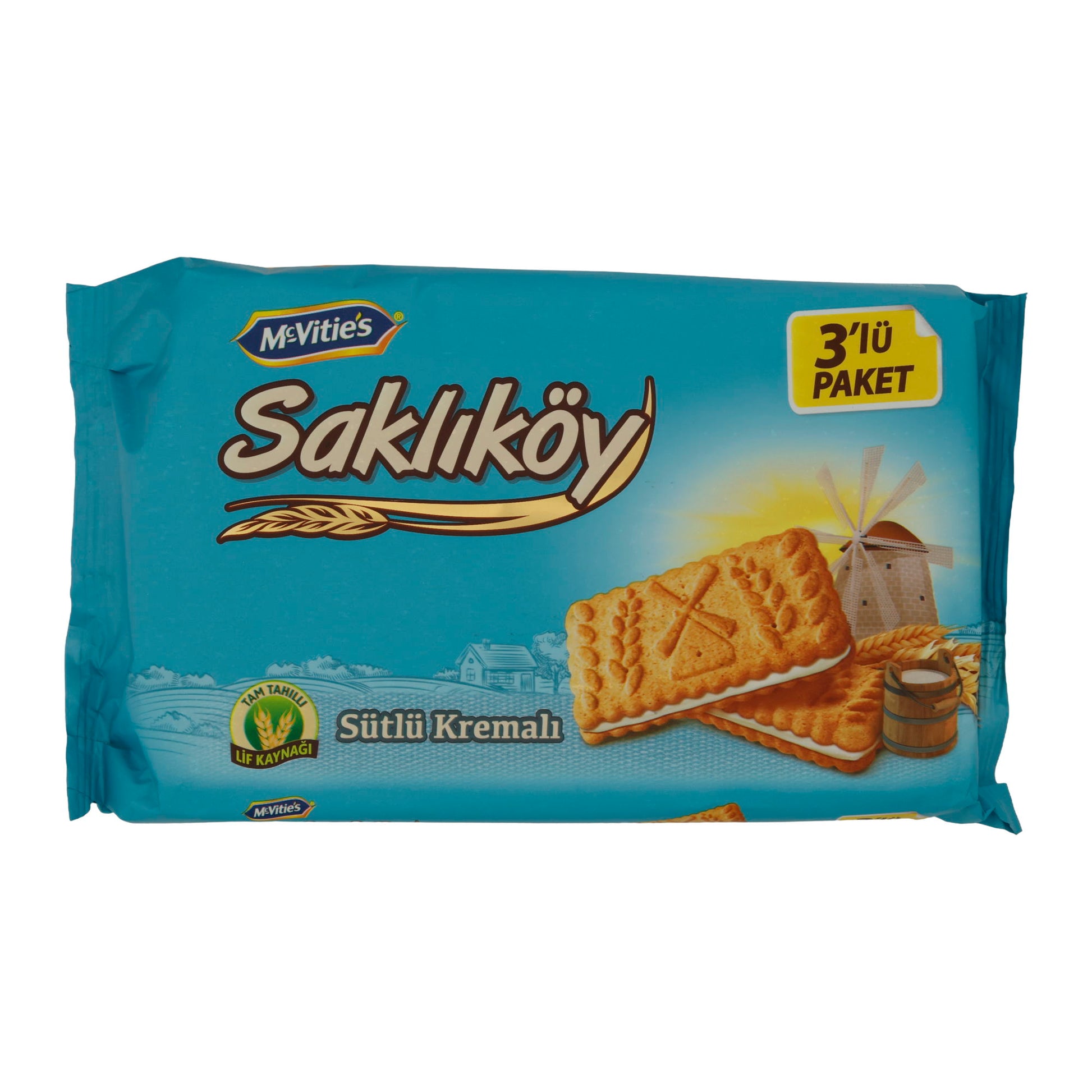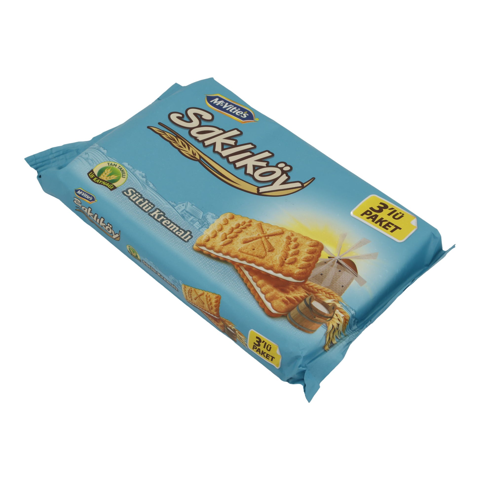 Die Haferkekse McVitie’s Saklıköy mit Milchcreme sind sofort verzehrfertig und eignen sich ideal als Snack zu Kaffee, Tee oder Milch. Sie können auch als Dessert-Boden verwendet werden, indem Sie die Kekse zerbröseln und als Basis für Schichtdesserts oder Torten nutzen.