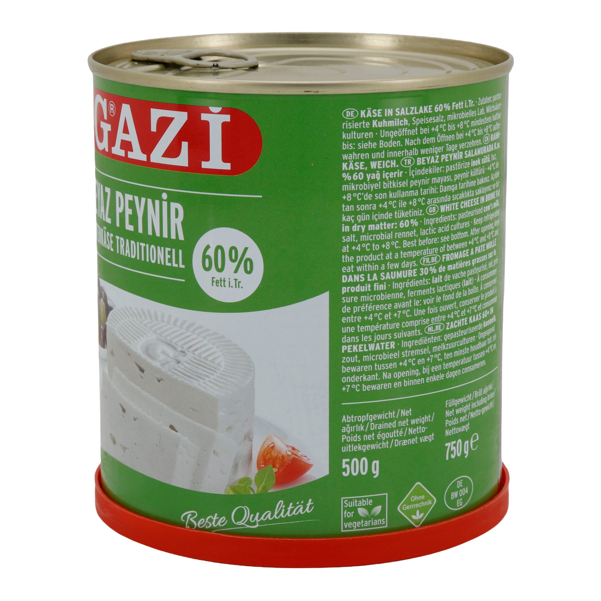 Hirtenkäse Gazi Beyaz Peynir liefert traditionellen Geschmack mit 60% Fett i. Tr. in Salzlake.