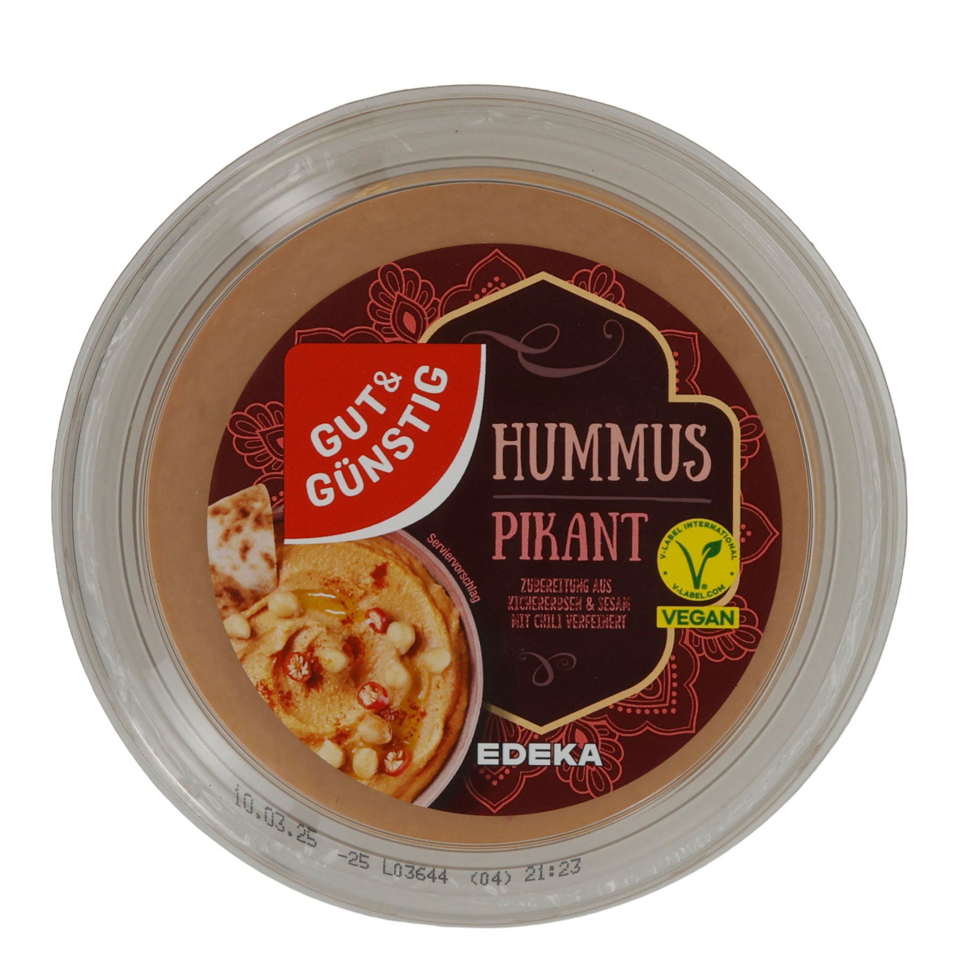 GUT GUENSTIG HUMMUS PIKANT 200G bietet einen intensiven, pikanten Geschmack, der Ihre Sinne belebt. Perfekt für Liebhaber von würzigen Speisen.