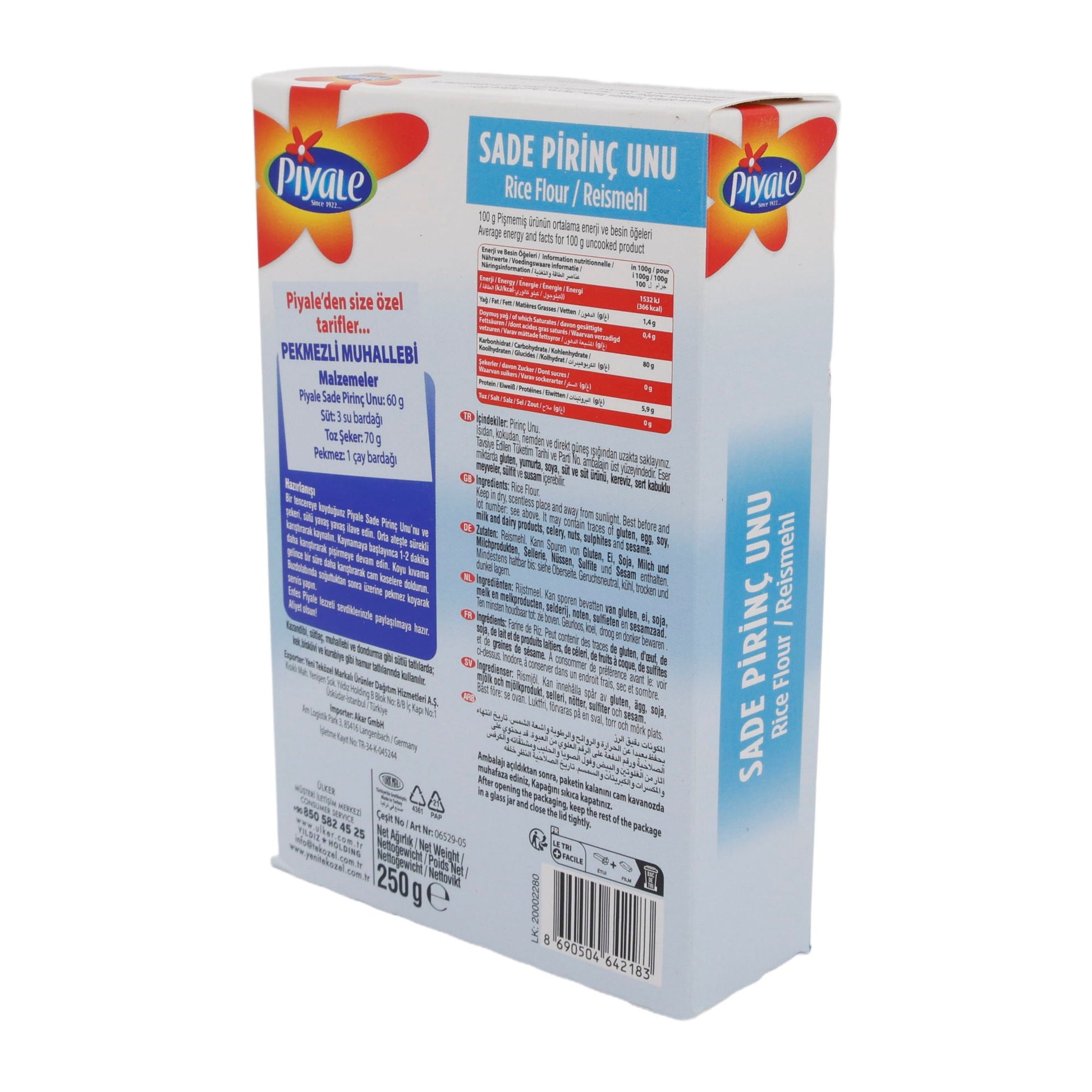 Mehl Piyale | Reismehl | Glutenfreie Zutat für vielfältige Anwendungen | 250 g bietet Ihnen die perfekte Grundlage für authentische türkische Spezialitäten. Dieses hochwertige Reismehl ist ideal für glutenfreies Kochen und Backen geeignet.