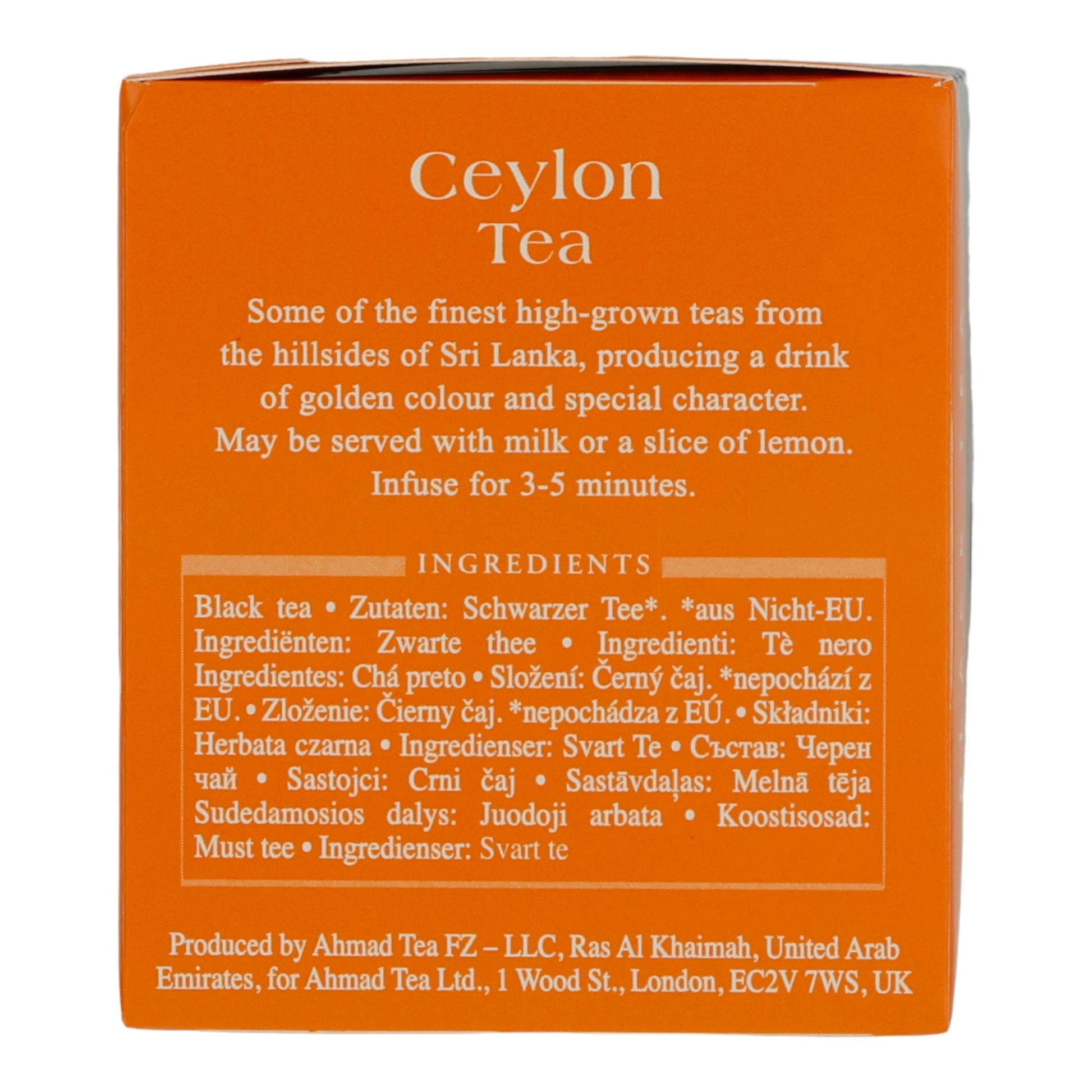 Produced by Ahmad Tea FZ–LLC, Ras Al Khaimah, United Arab Emirates, for Ahmad Tea Ltd., 1 Wood St., London, EC2V 7WS, UK