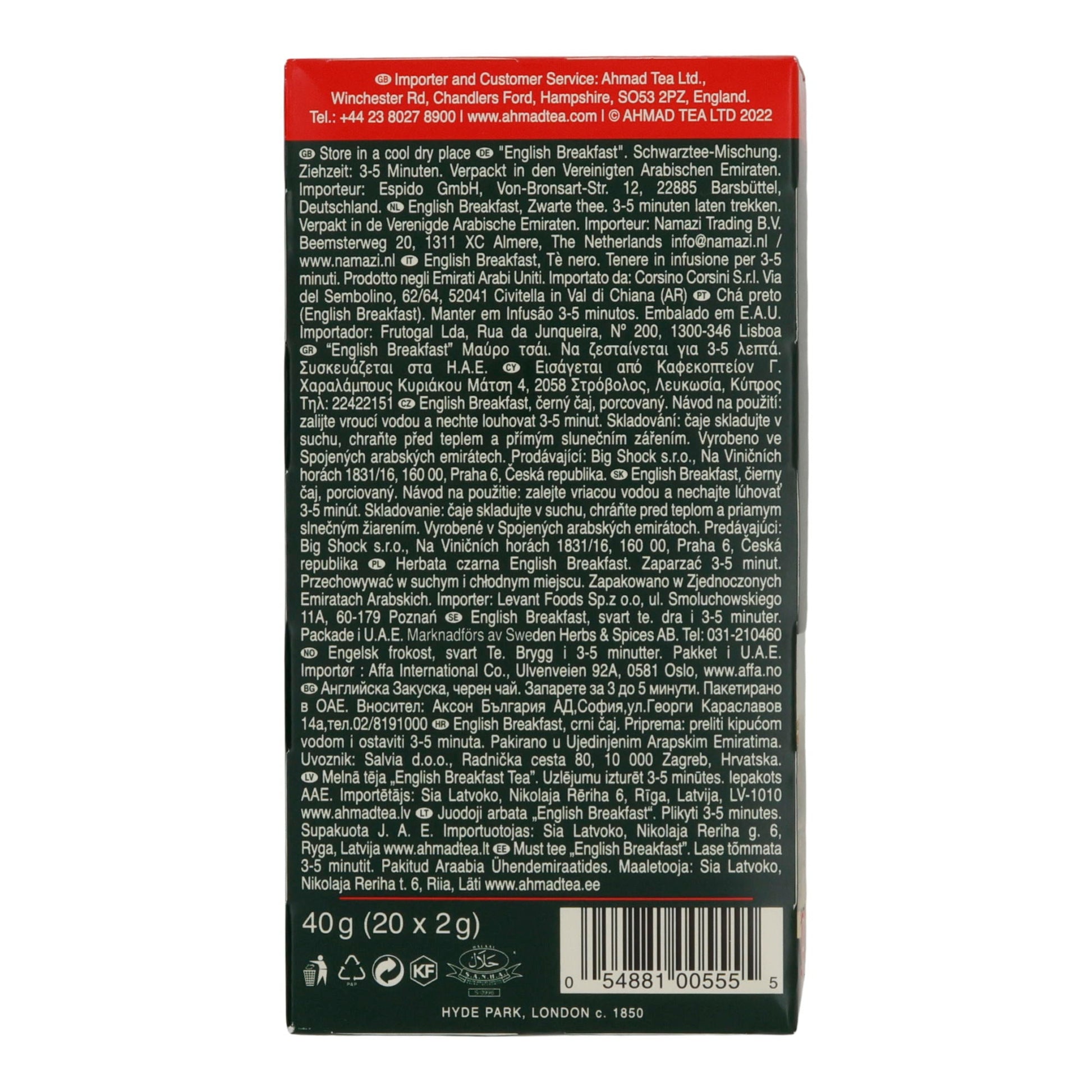 Schwarztee Ahmad Tea | English Breakfast | Klassischer Schwarzer Tee für den Frühstücksgenuss | 20 Teebeutel