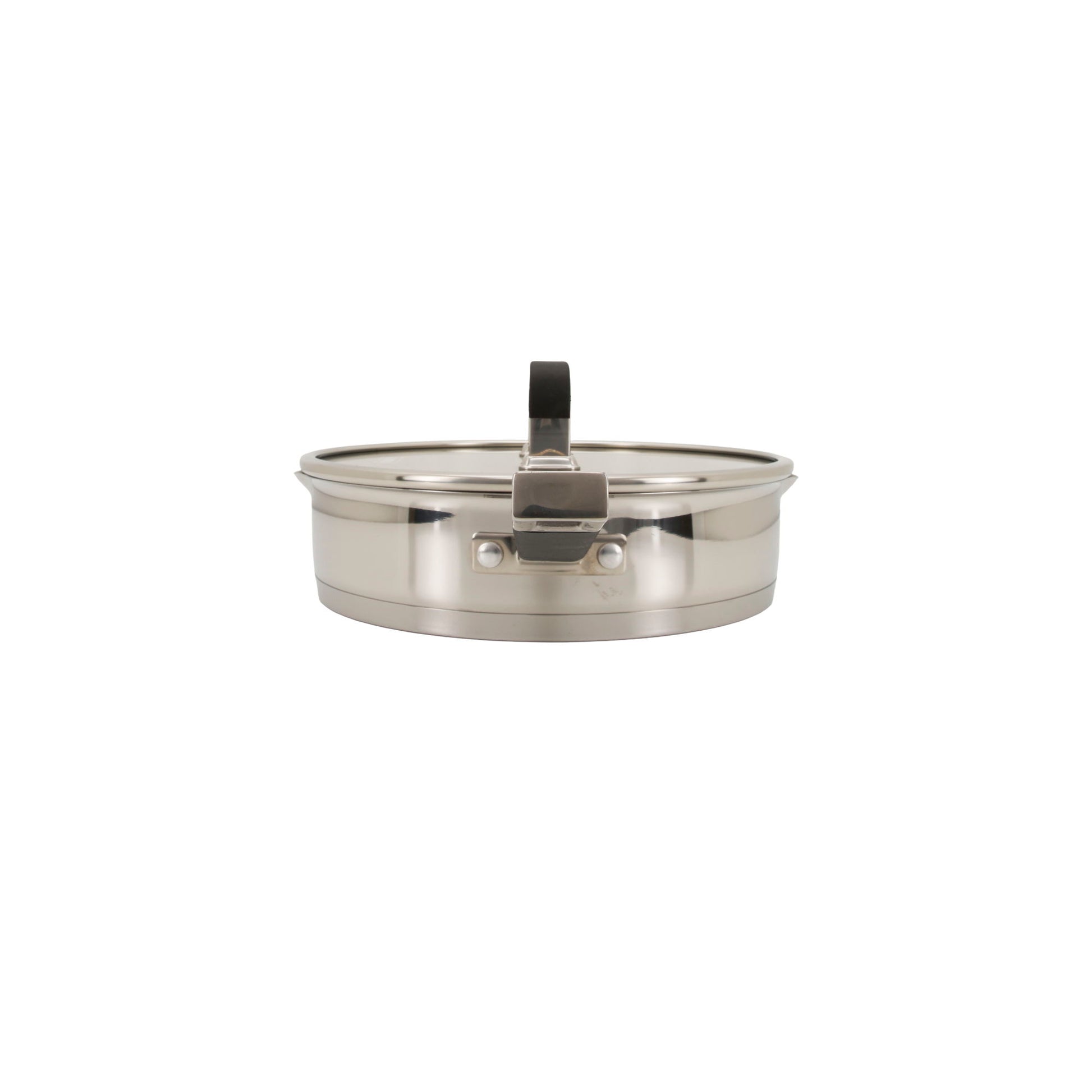 - Edelstahl-Pfanne mit passendem Glasdeckel