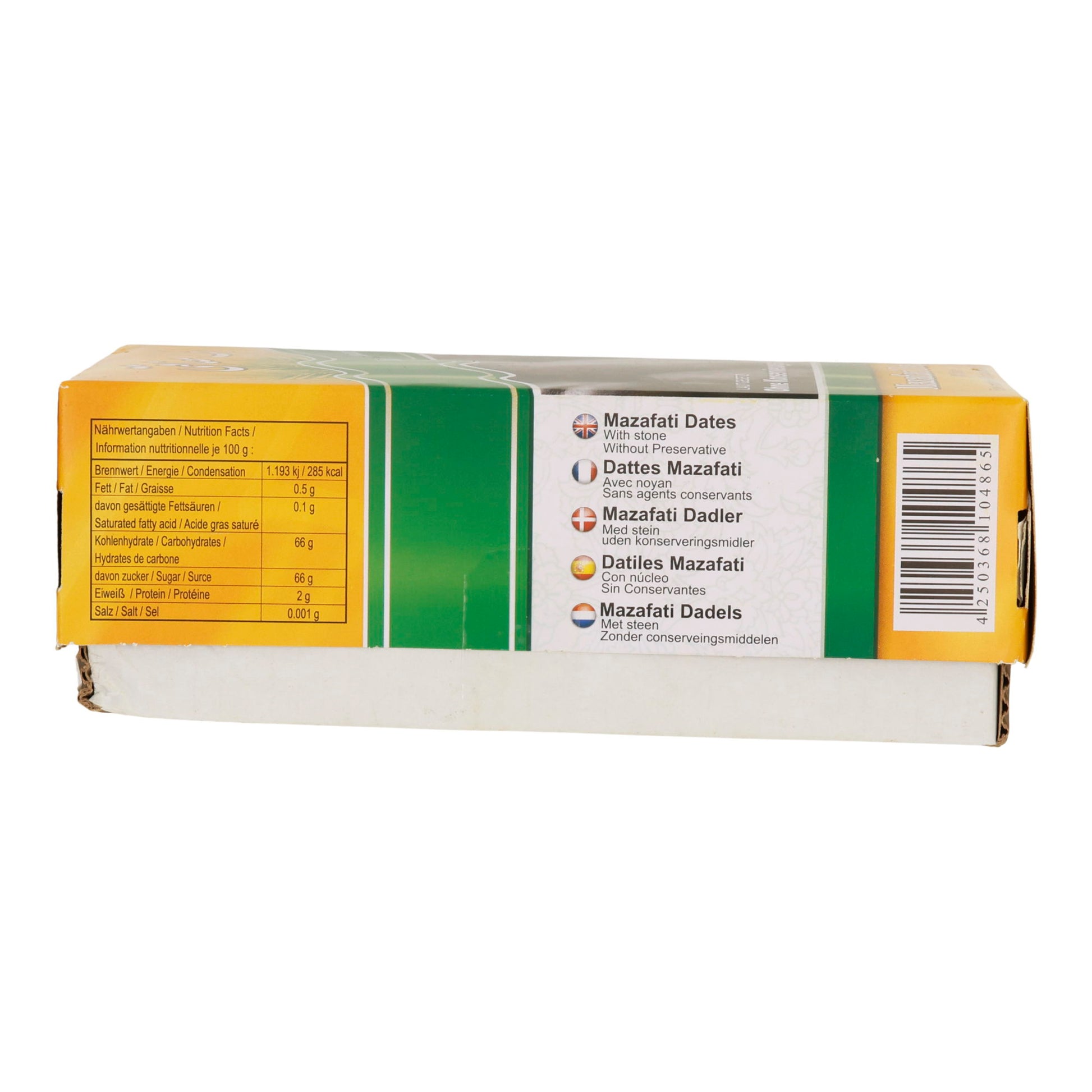 Zutaten: 100 % Datteln (Mazafati), mit Stein.