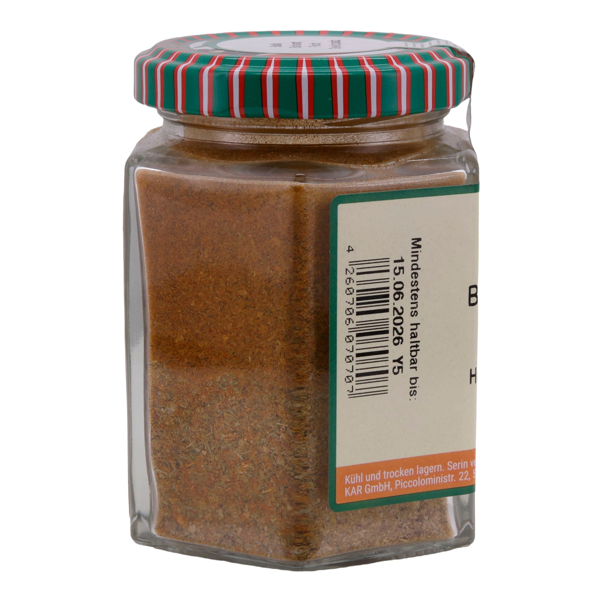 Die Gewürzmischung sollte kühl, trocken und lichtgeschützt gelagert werden, um ihre Frische und Aromen zu bewahren.