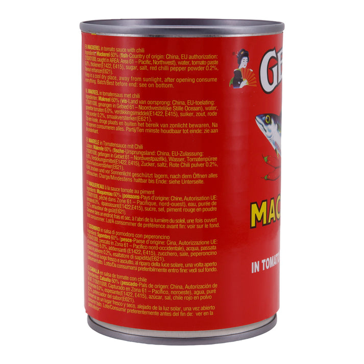 Fisch Geisha | Makrele in Tomatensauce mit Chili | Würzige Delikatesse für Liebhaber scharfer Meeresfrüchte | 425 g