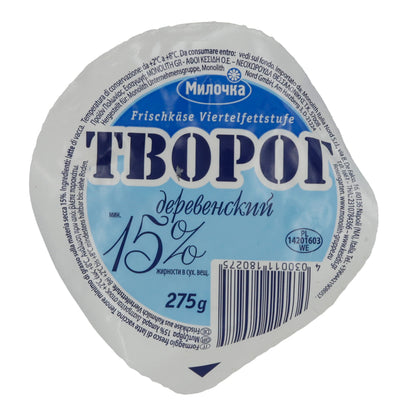 Frischkäse Milochka | Traditioneller Tworog | 15 % Fett für leichte Gerichte | 275 g bietet authentischen Geschmack und Qualität.