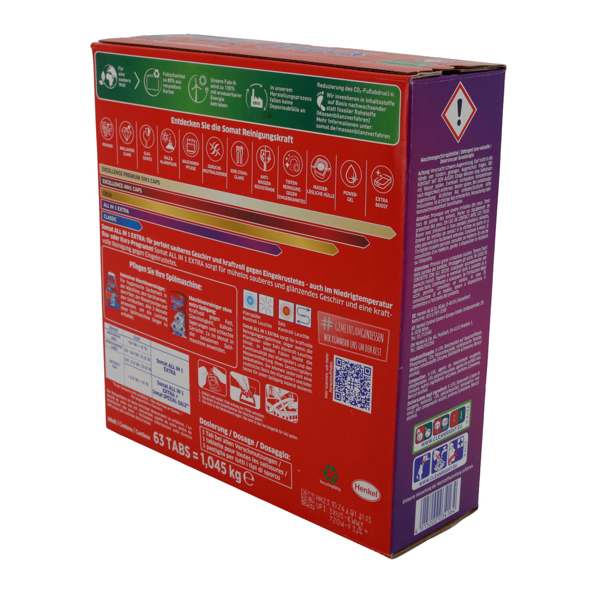 Geschirrspültabs Somat | All in 1 Extra | Kraftvoll gegen Eingebranntes | 63 Stück bietet eine effiziente Reinigung für Ihr Geschirr.