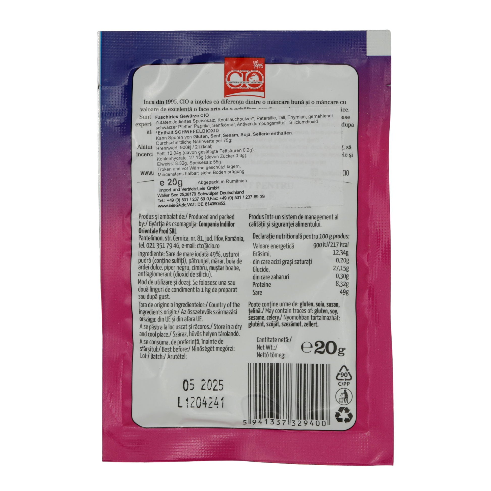 Diese Mischung zeichnet sich durch ihre ausgewogene Kombination klassischer Gewürze wie Jodiertes Speisesalz, Knoblauchpulver, Petersilie, Dill, Thymian und gemahlenem schwarzen Pfeffer aus. Sie ist laktosefrei und enthält keine Geschmacksverstärker oder Konservierungsstoffe.