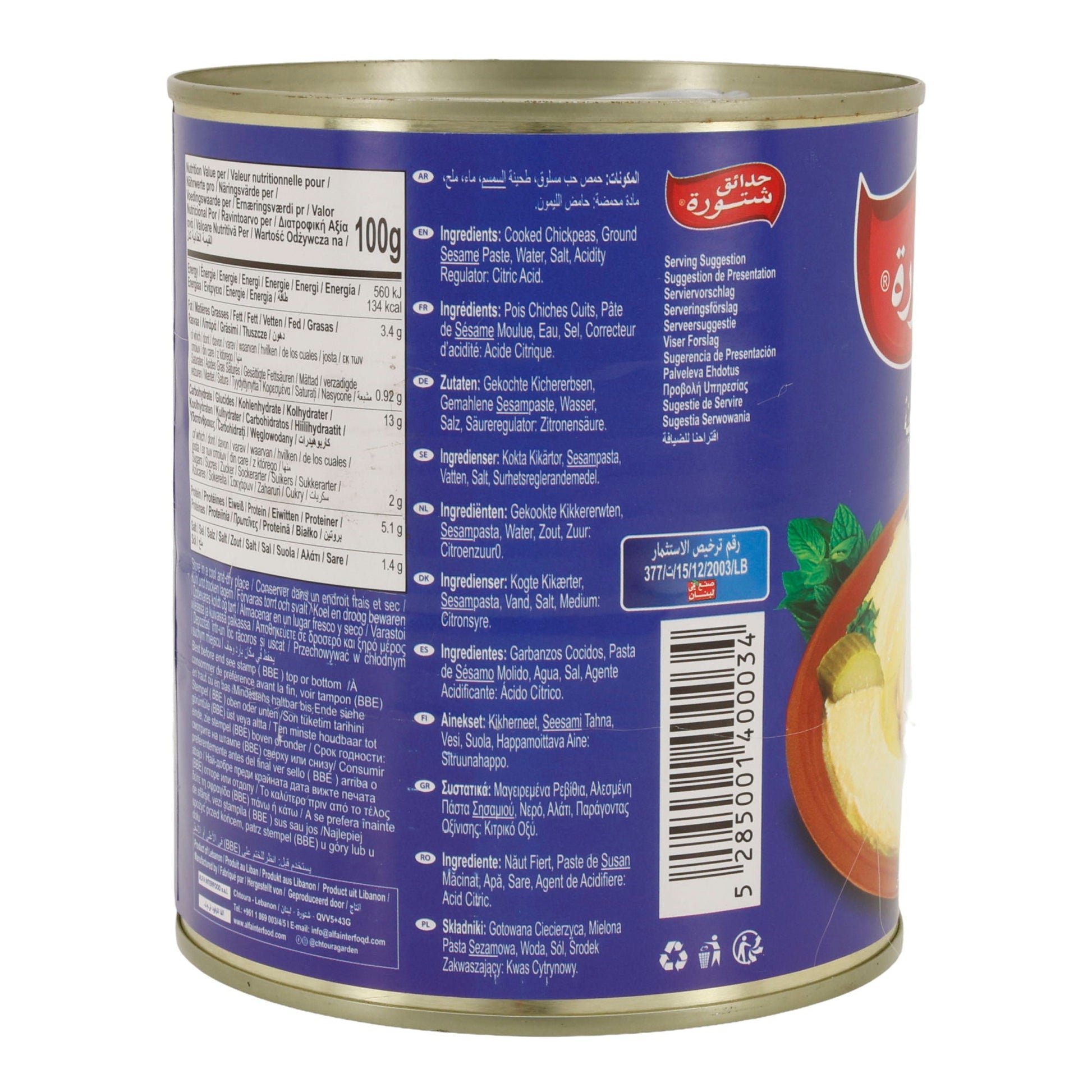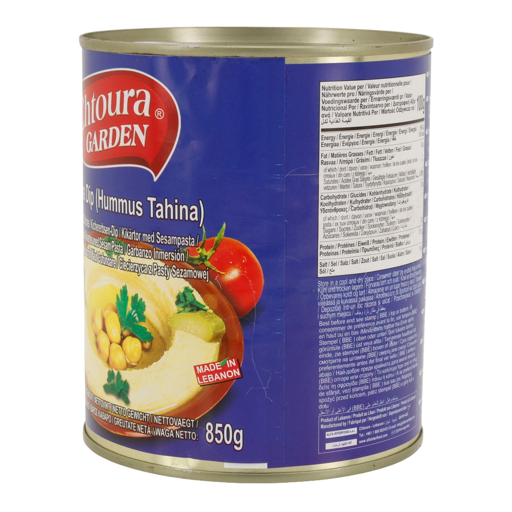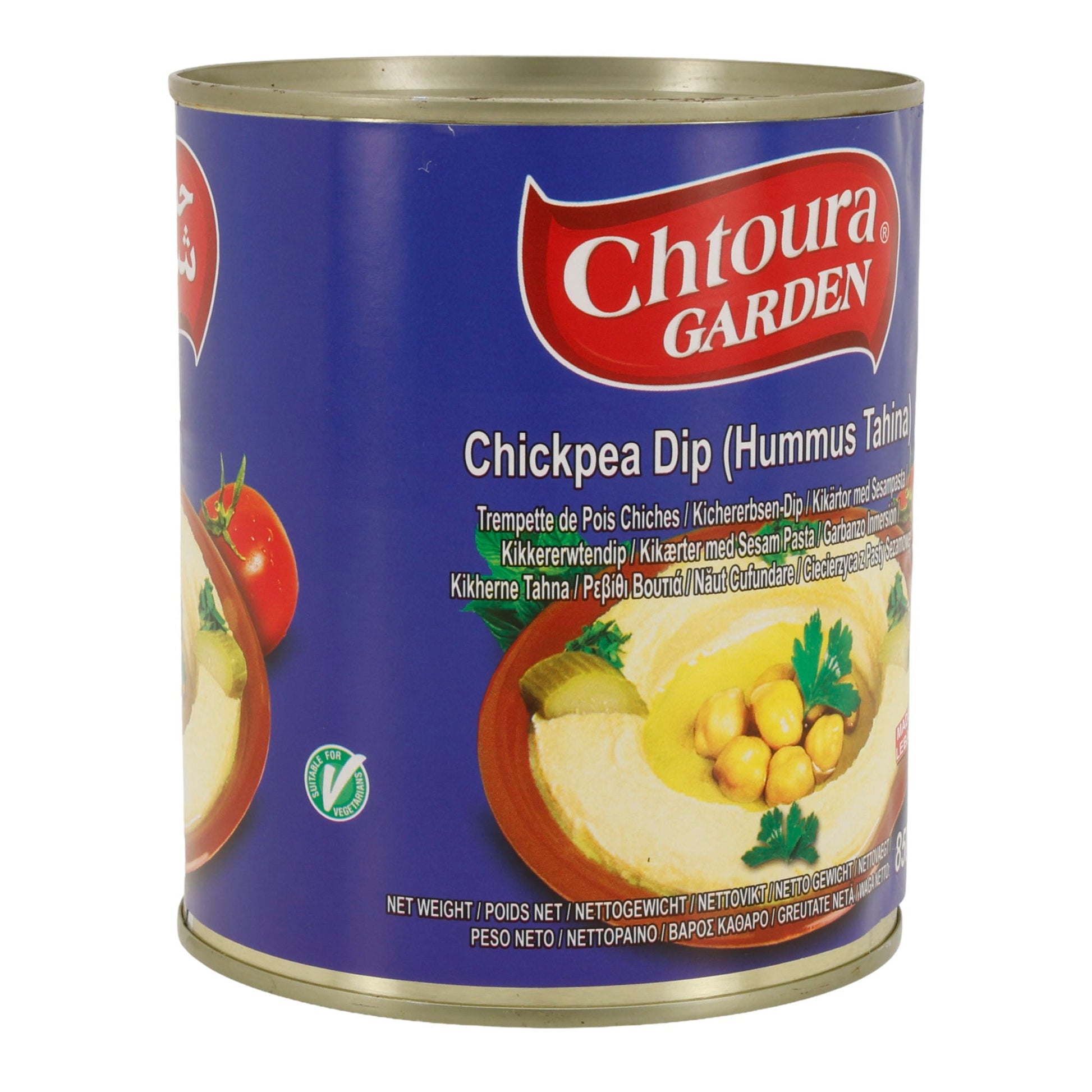 Der Hummus mit Tahina von Chtaura Garden ist ein cremiger Kichererbsen-Dip nach traditionell libanesischer Art. Die Kombination aus pürierten Kichererbsen, gemahlener Sesampaste, Zitronensäure und Salz ergibt einen milden, herzhaften Geschmack – ideal zu Fladenbrot, als Vorspeise oder Beilage. Die Großdose mit 850 g eignet sich perfekt für Familienportionen oder Gastronomie.