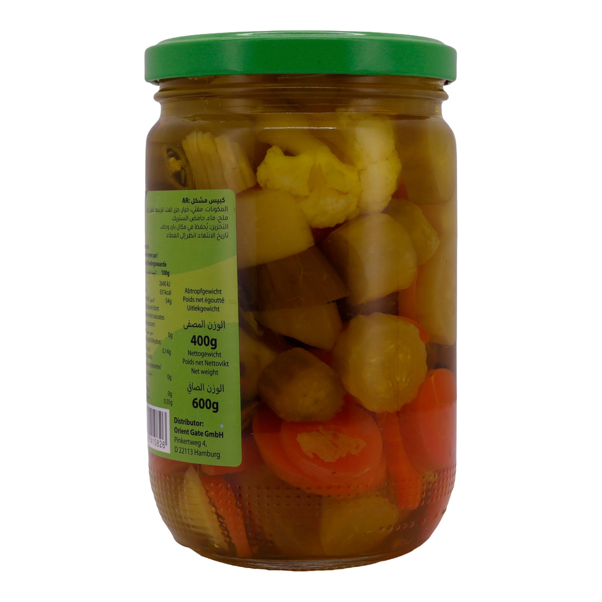 Eingelegtes Gemüse Boustan ist ideal für Mezze-Platten, als Beilage zu orientalischen Gerichten oder als würzige Ergänzung zu Salaten und Sandwiches. Es bietet einen erfrischenden Kontrast zu herzhaften Speisen.