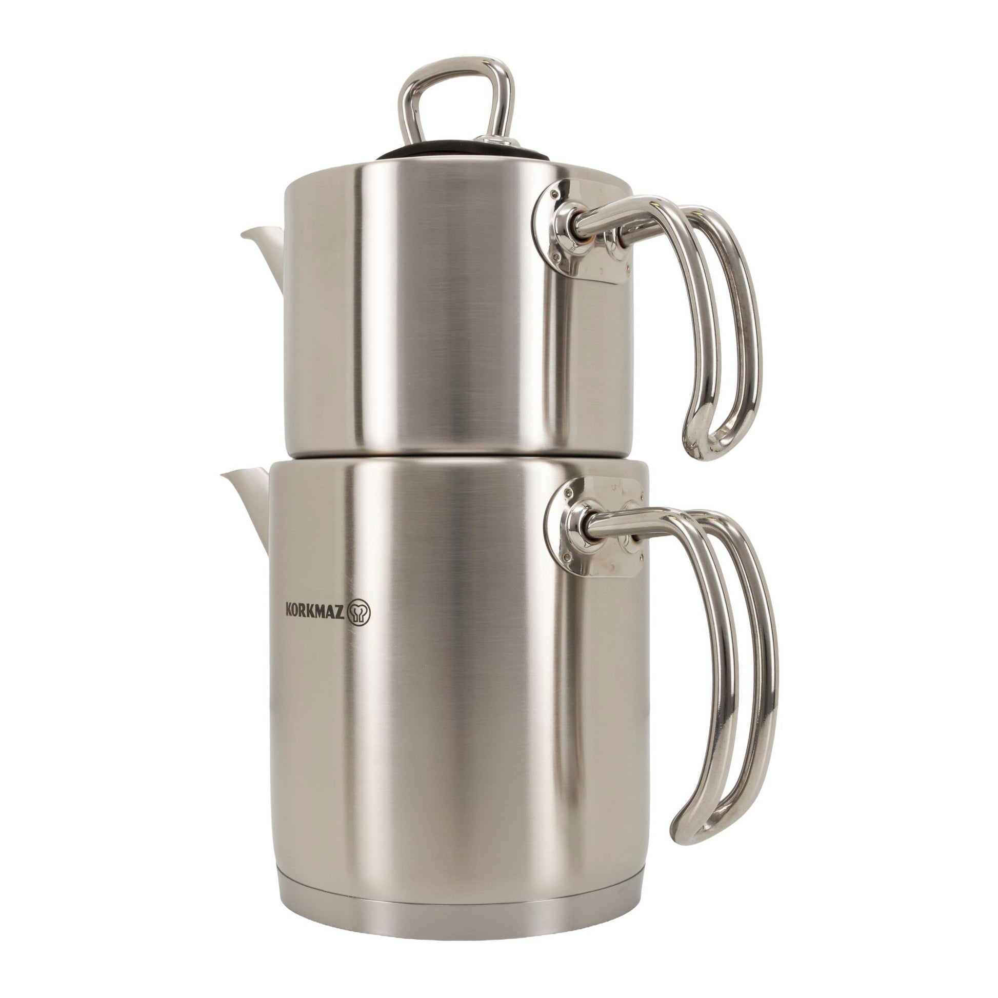 Korkmaz Proline Edelstahl Çaydanlık Teekanne Set – 2-teilig (1,2 L + 1,8 L) – Teekocher Induktion