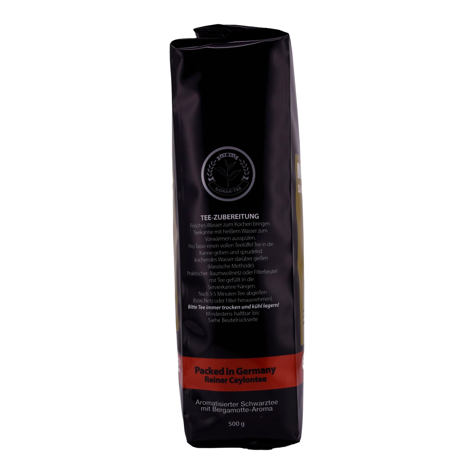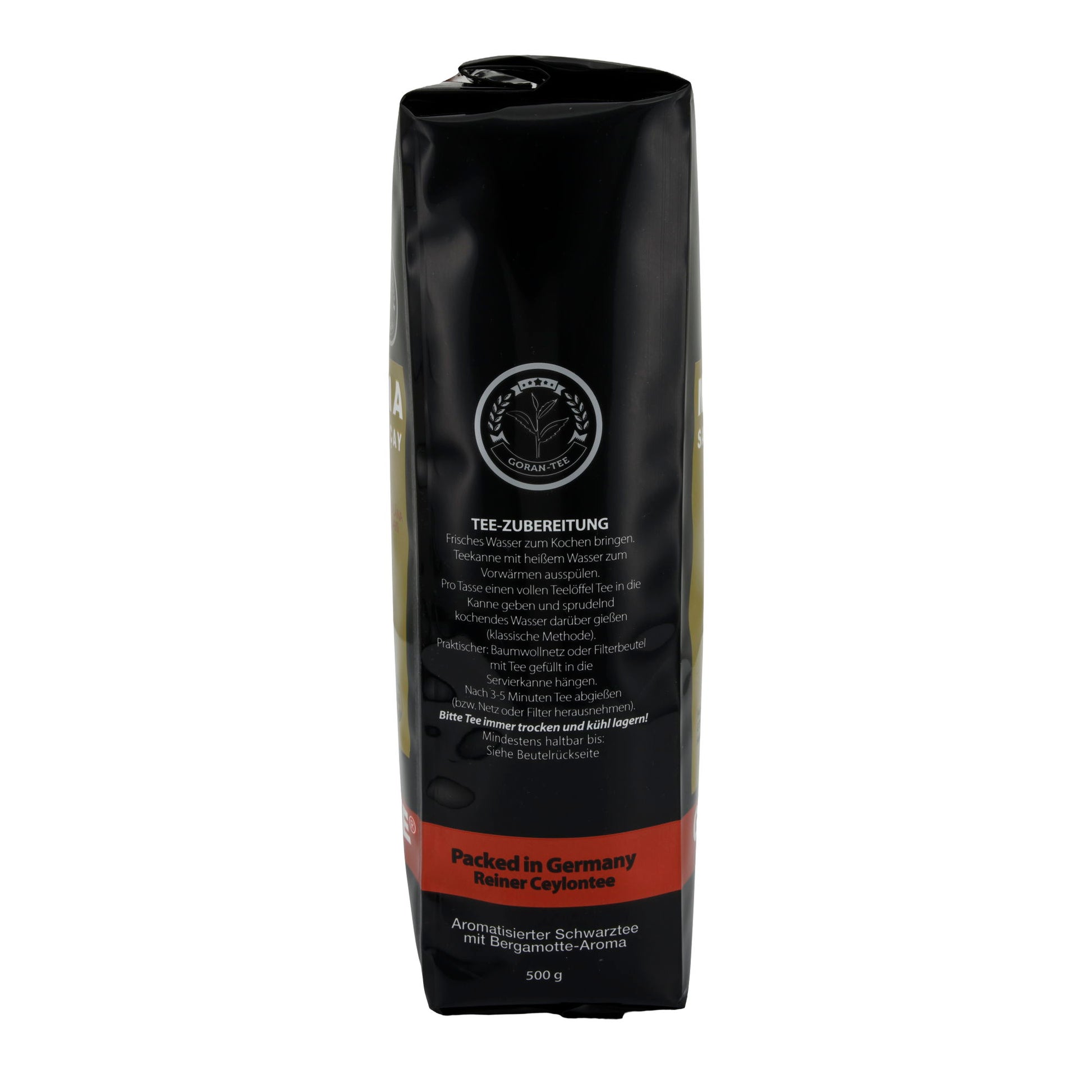 Luxus Tee GORAN ist eine Premium-Teemischung aus 100 % reinem schwarzen Ceylon-Tee, bekannt für seinen kräftigen, vollmundigen Geschmack und seine fast staubfreie Qualität. Die großen Teeblätter stammen aus dem Hochland Sri Lankas und bieten ein natürliches, reines Aroma ohne künstliche Zusätze.