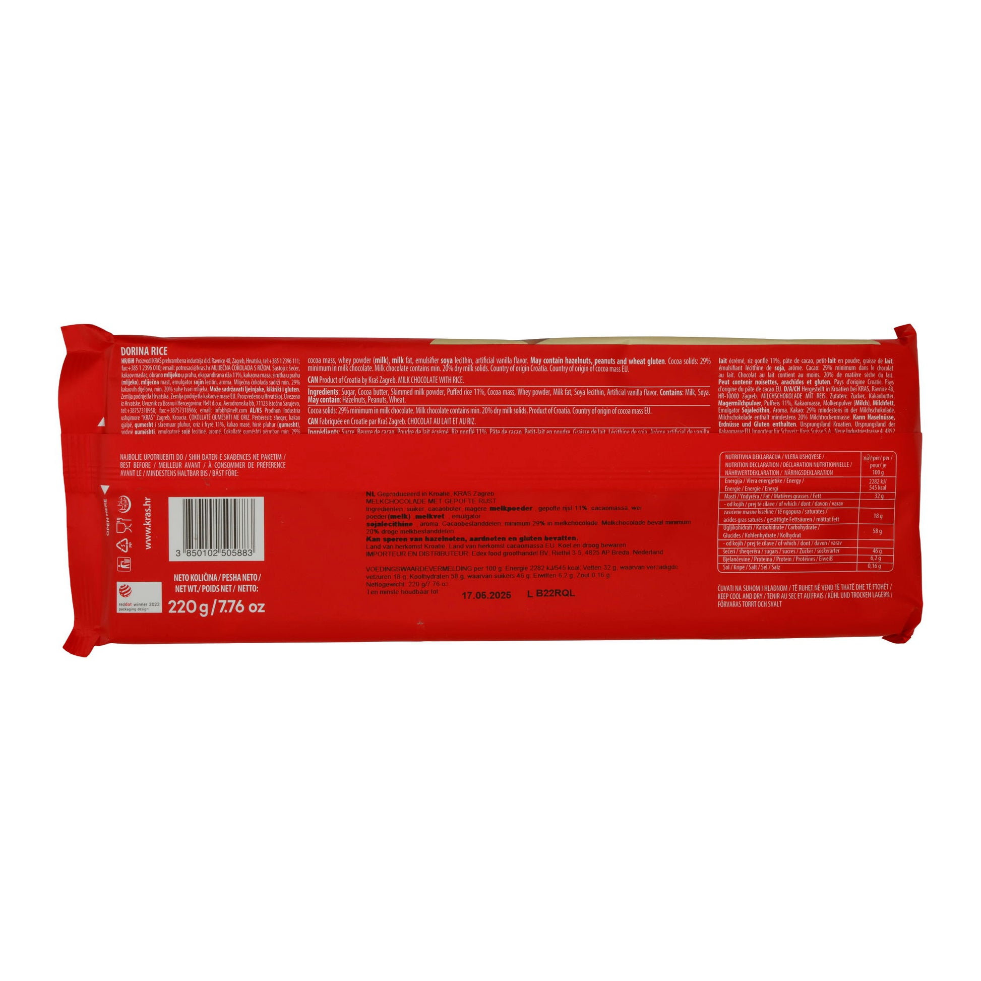 - Produkt: Dorina Rice (Milchschokolade mit Reis)
