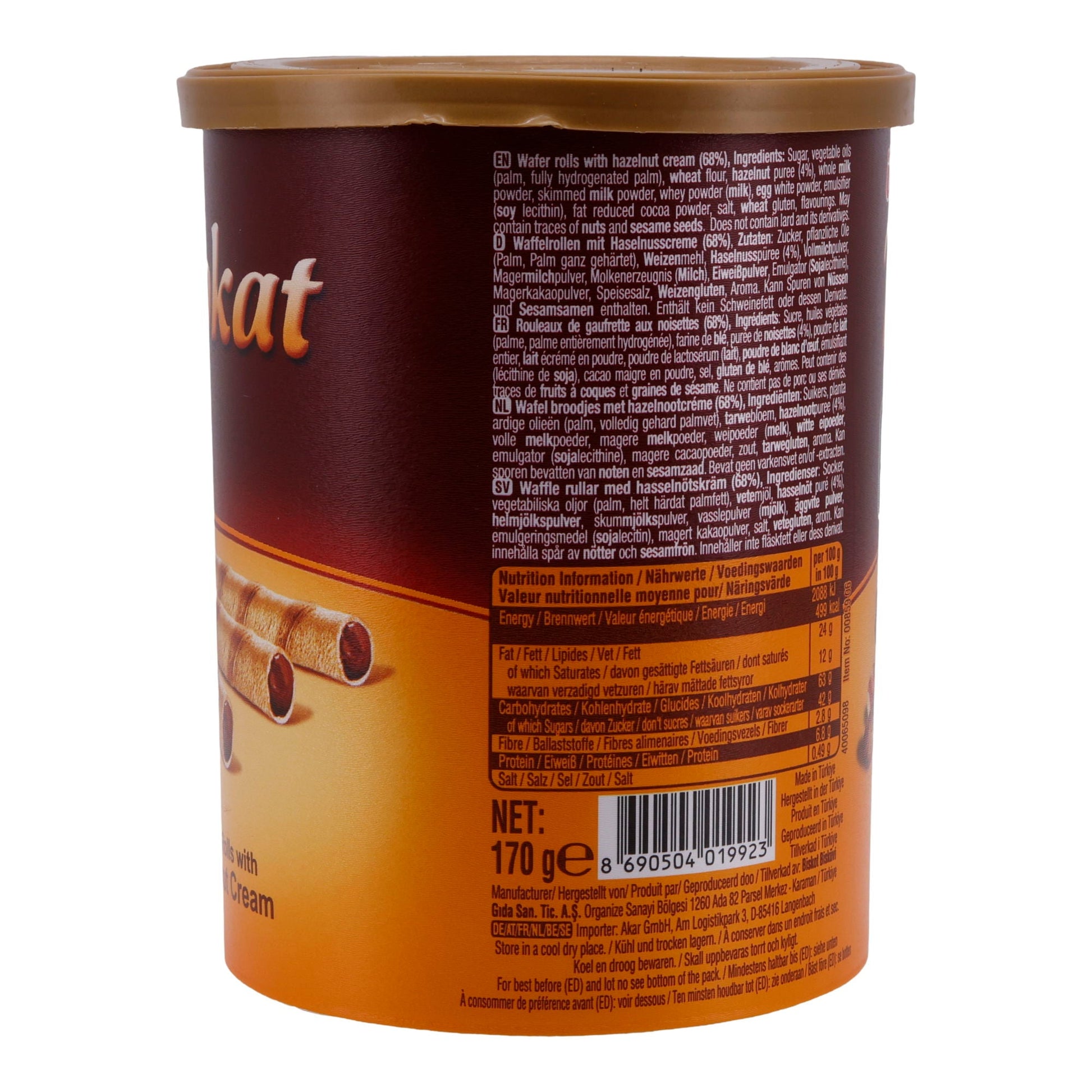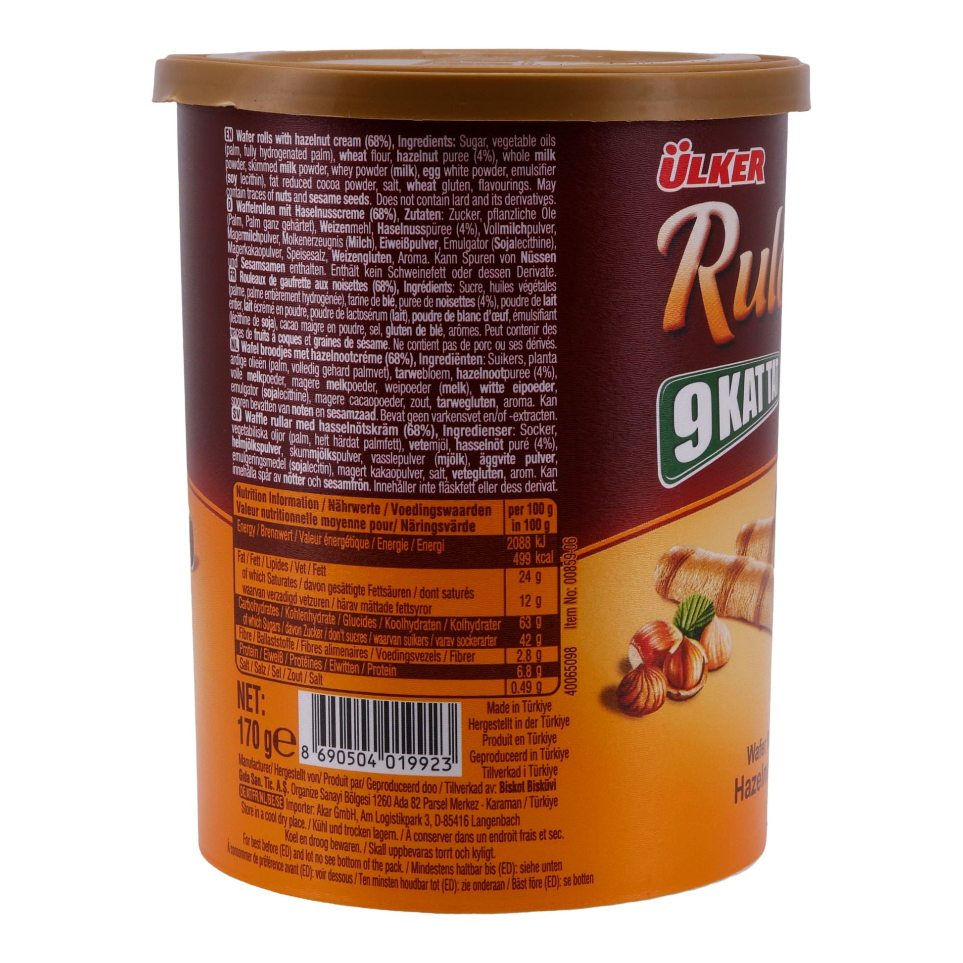 Waffelröllchen Ülker | Rulokat | Mit Haselnusscreme | 170 g bietet ein unwiderstehliches Geschmackserlebnis mit knuspriger Waffel und zarter Haselnusscreme.