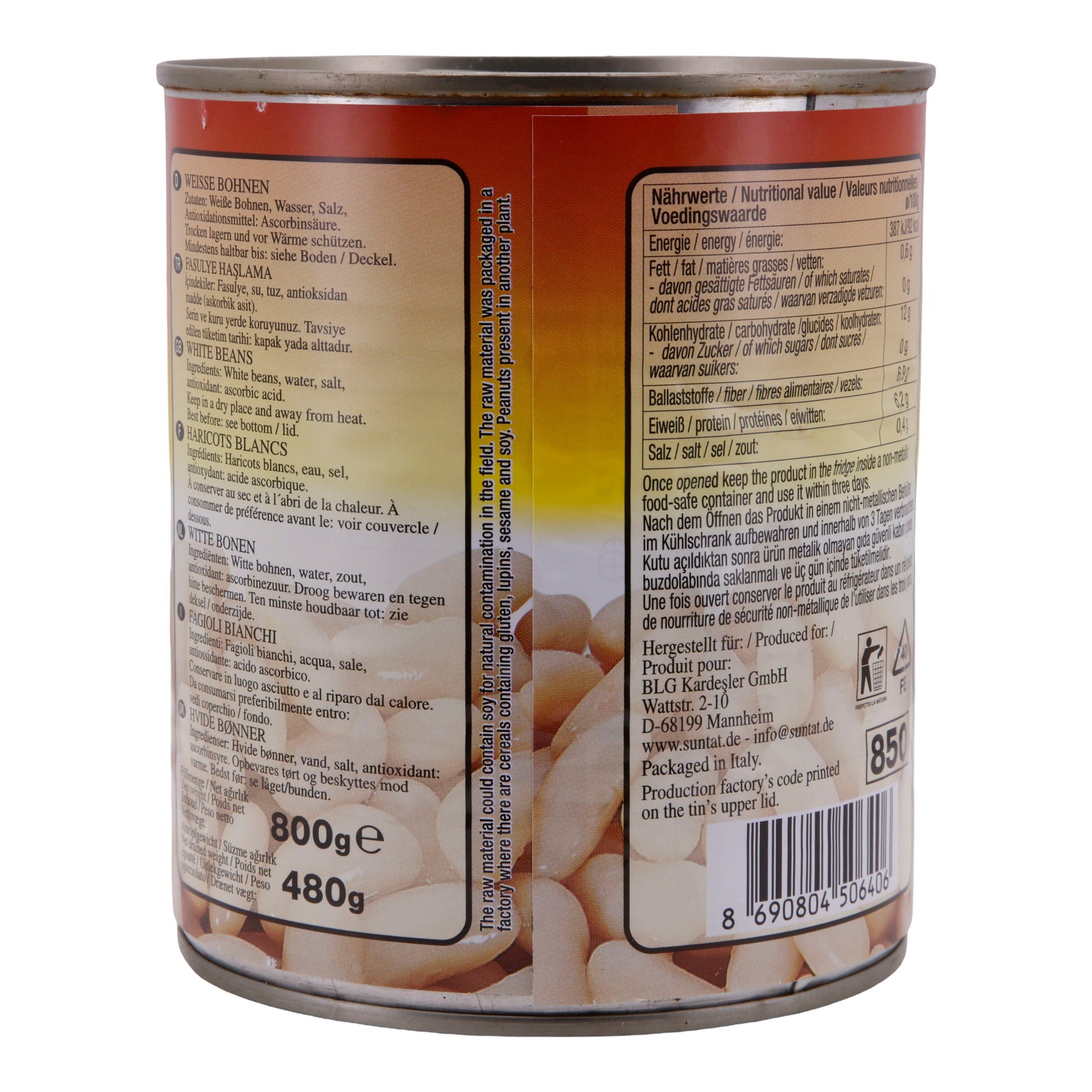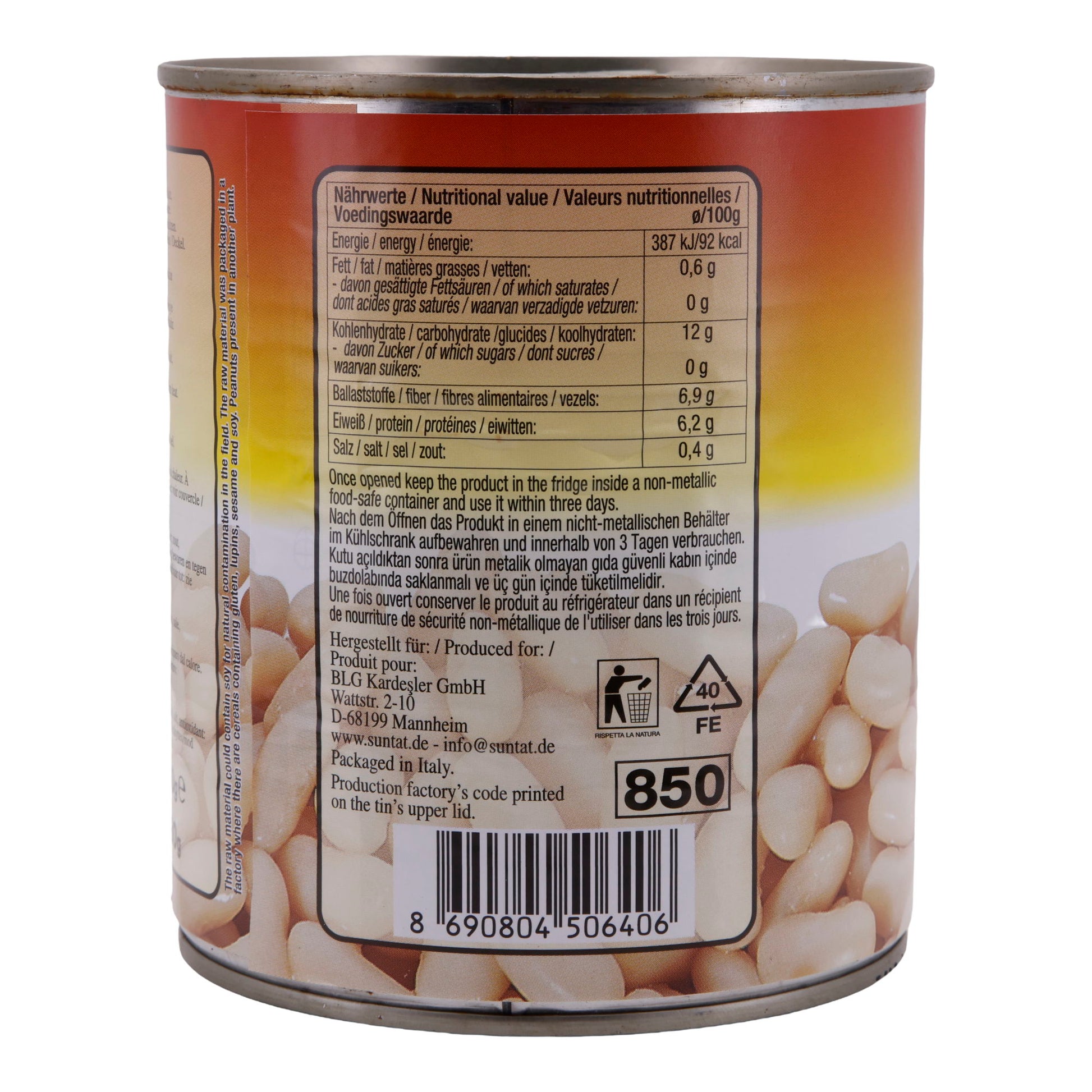 Weiße Bohnen von Suntat sind bereits gekocht und in Salzlake eingelegt, was sie ideal für schnelle Mahlzeiten macht. Einfach abgießen, abspülen und in Salaten, Eintöpfen oder als Beilage verwenden.