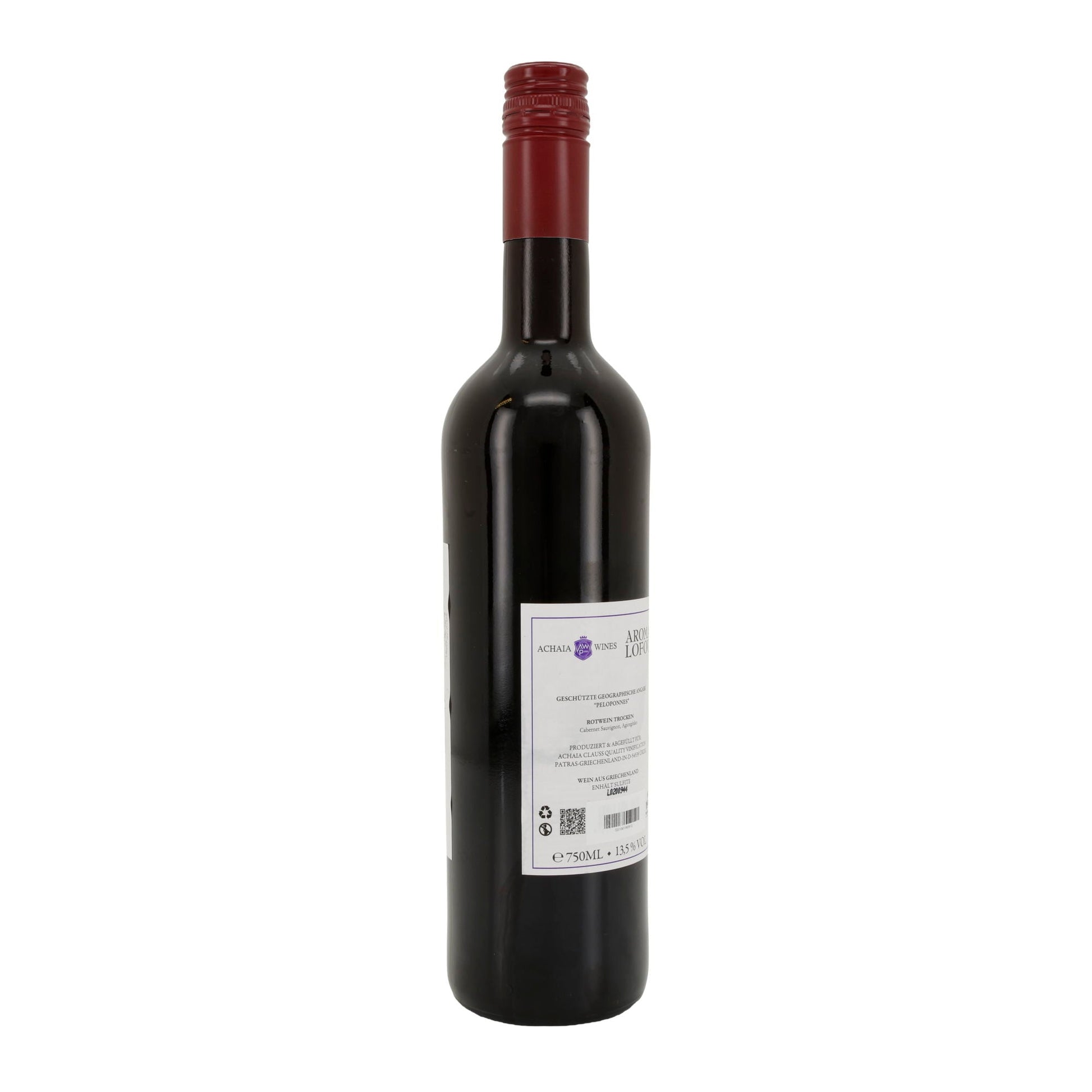 „Aroma Lofou“ ist ein trockener Rotwein mit geschützter geografischer Angabe aus der Region Achaia in Griechenland. Er wird aus sorgfältig ausgewählten Trauben traditioneller Rebsorten vinifiziert und überzeugt mit einem harmonischen, kraftvollen Geschmack und feinen Tanninen. Ideal zu Fleischgerichten, Pasta oder reifem Käse.