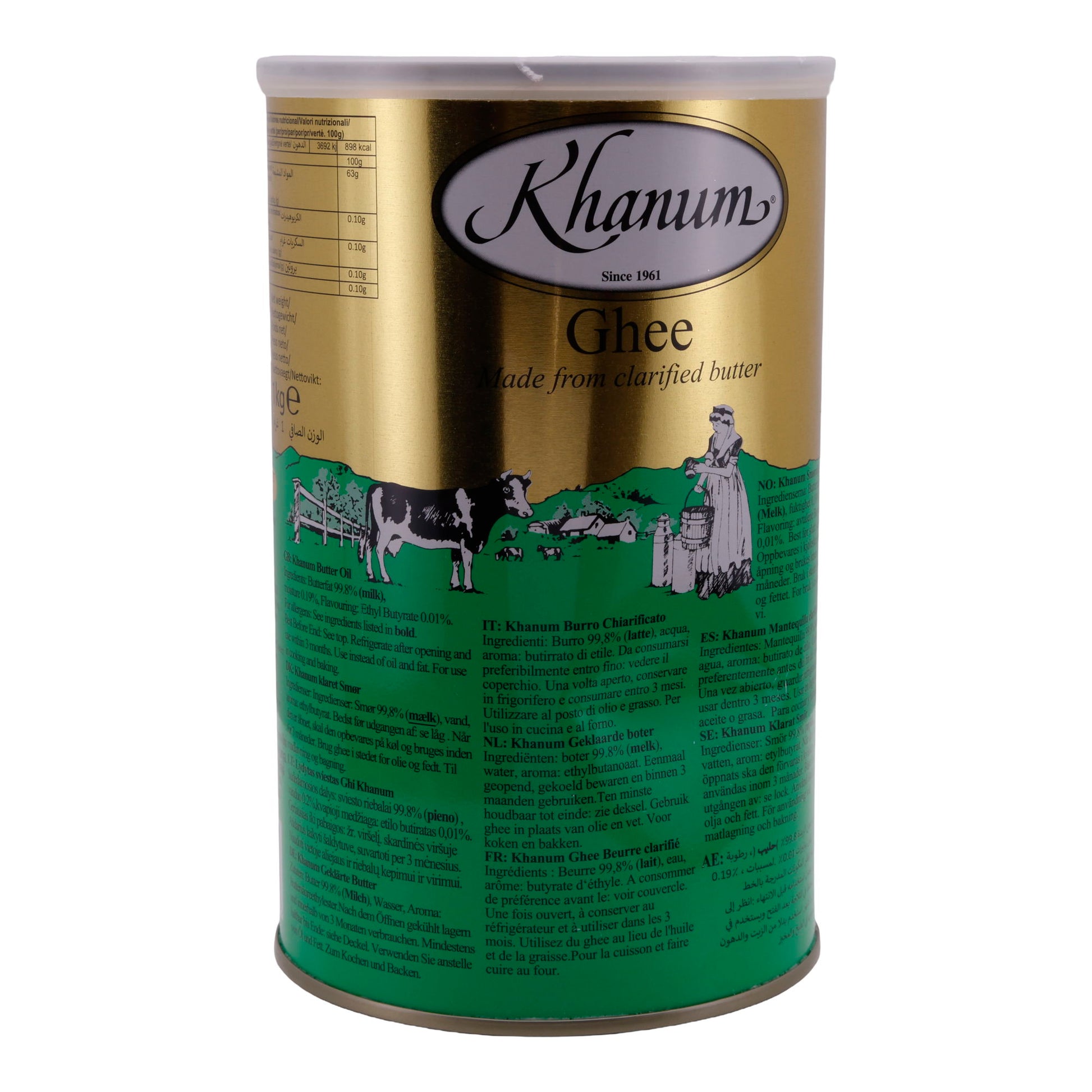Khanum Ghee ist reines Butterschmalz, das laktosefrei und sehr lange haltbar ist. Es hat einen leicht nussigen, aromatischen Geschmack und enthält nahezu 100% Fett, was es besonders ergiebig macht.