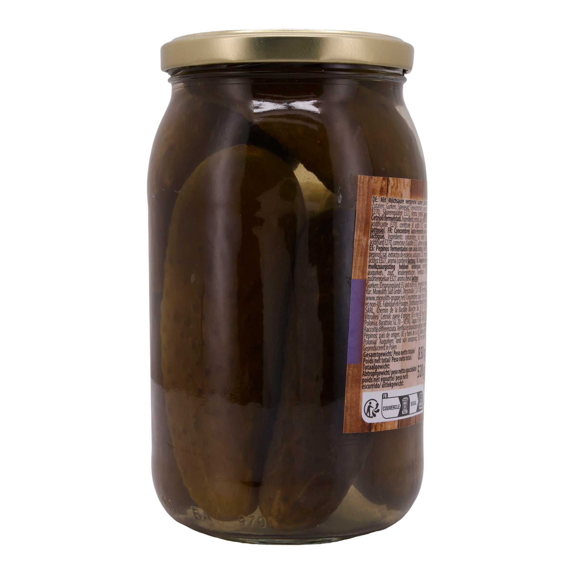 Lagern Sie die Gurken an einem kühlen, dunklen Ort. Nach dem Öffnen sollten sie im Kühlschrank aufbewahrt und innerhalb von zwei Wochen verzehrt werden, um die beste Qualität zu gewährleisten.
