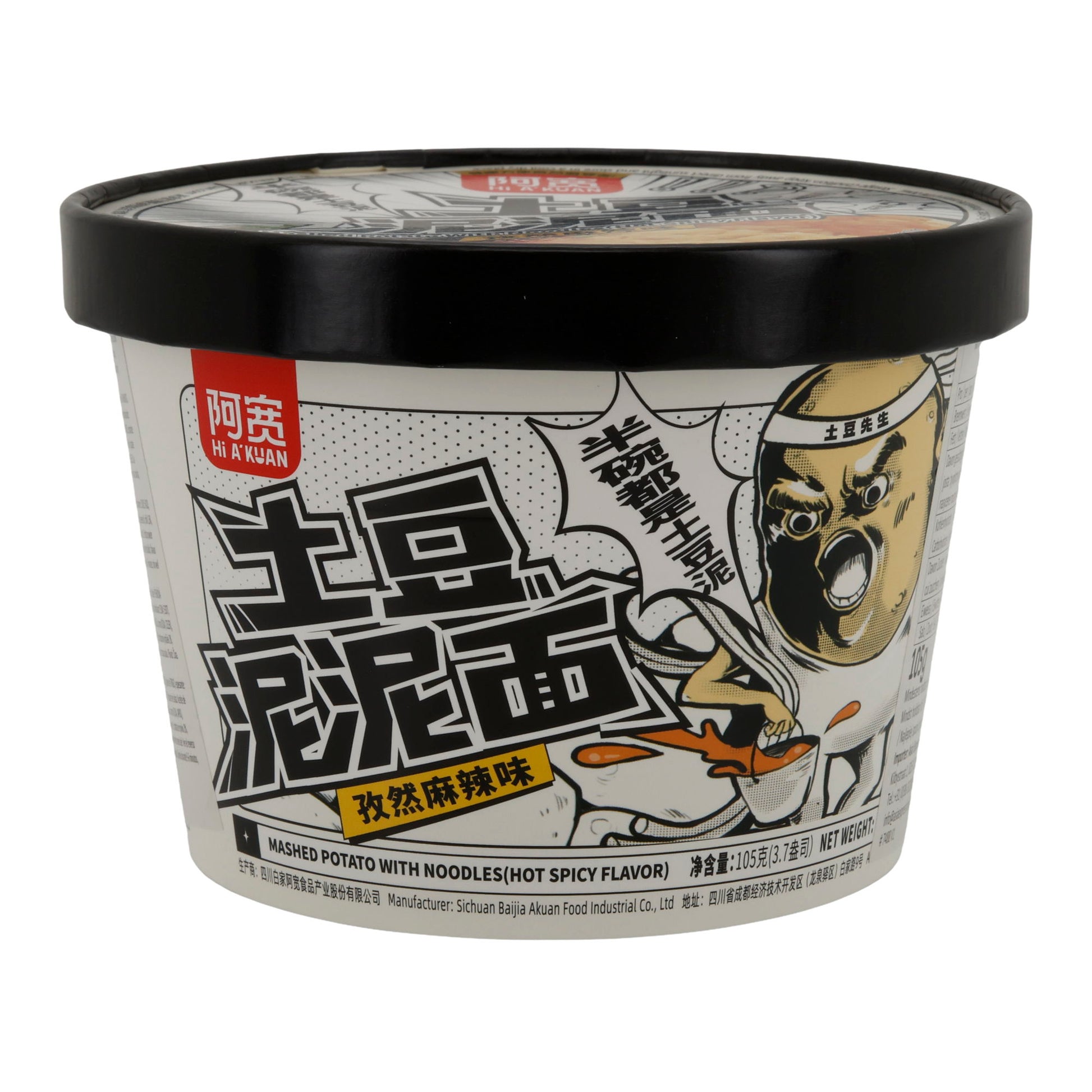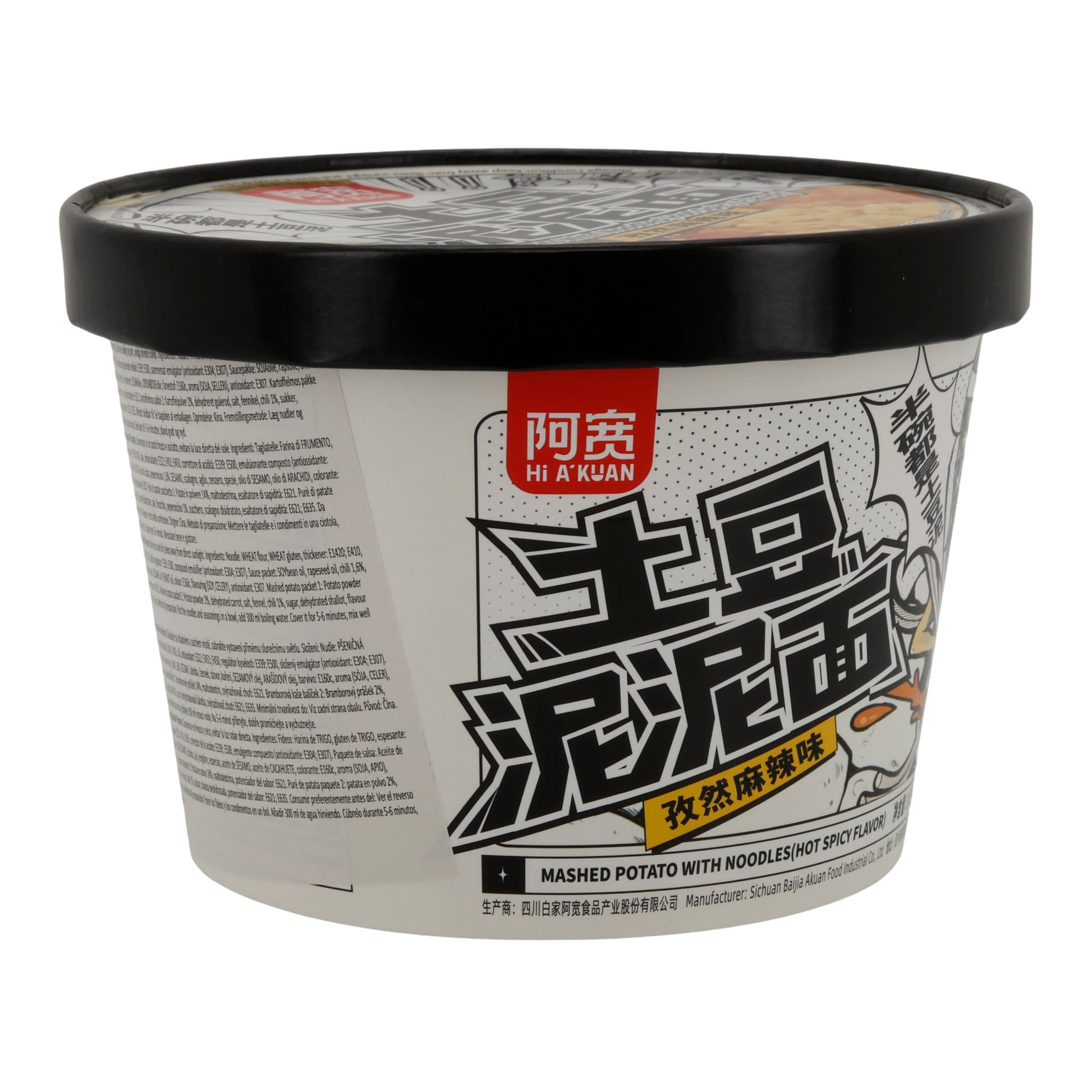 Mashed Potato with Noodles Hi A Kuan liefert den ultimativen Geschmackserlebnis für Liebhaber von scharfen Speisen. Diese Premium Instantnudeln vereinen die perfekte Kombination aus Kartoffelpüree und Nudeln mit einem hot spicy Flavor.