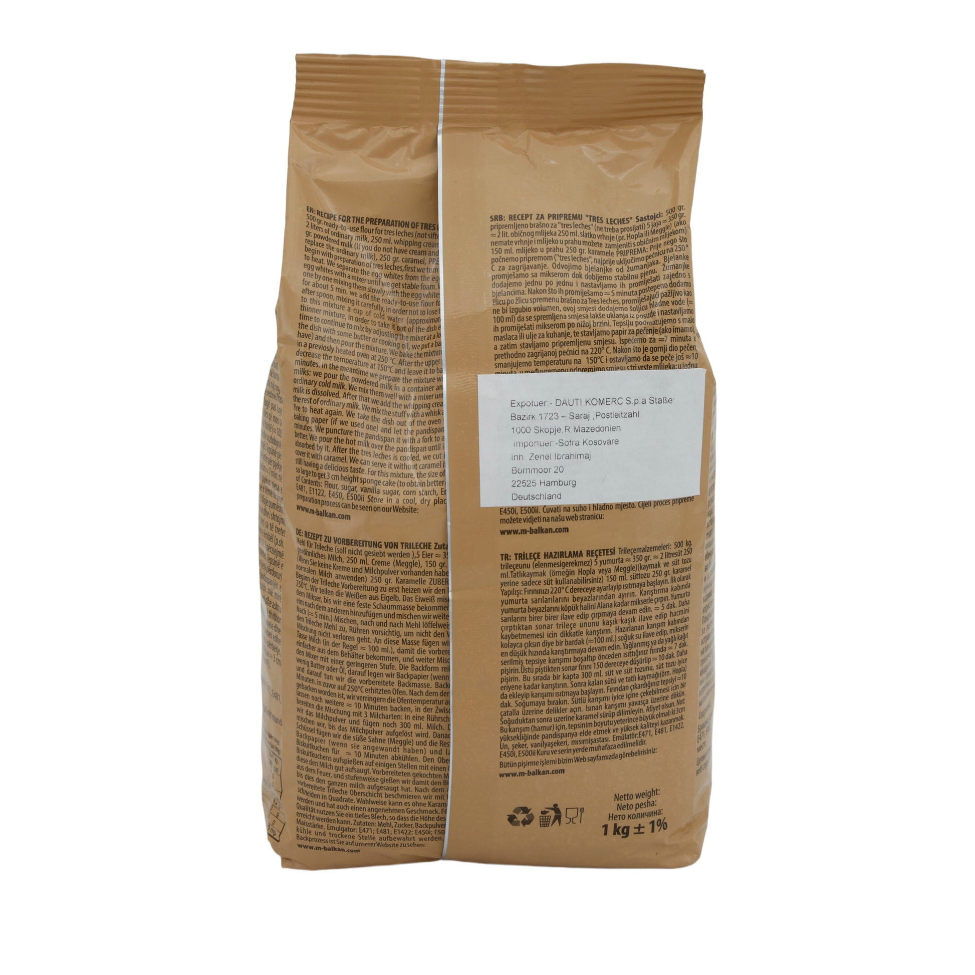 Mehlmischung Tres Leches | Vorgefertigt | Für traditionelle Desserts | 1 kg liefert die perfekte Basis für authentische Tres Leches Kuchen.