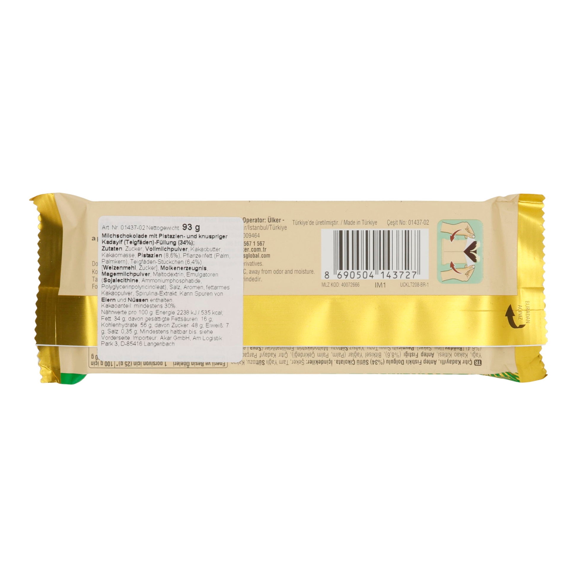 Milchschokolade Ülker | Mit Pistazien-Kadayif-Füllung | Knusprige Füllung mit feiner Nussnote | 93 g
