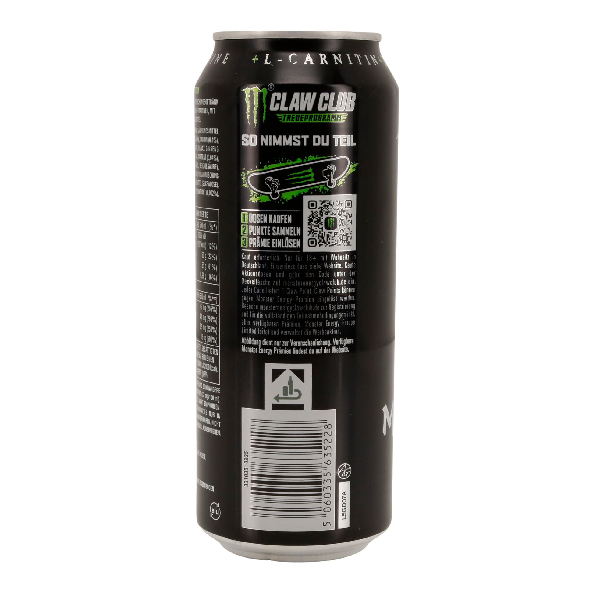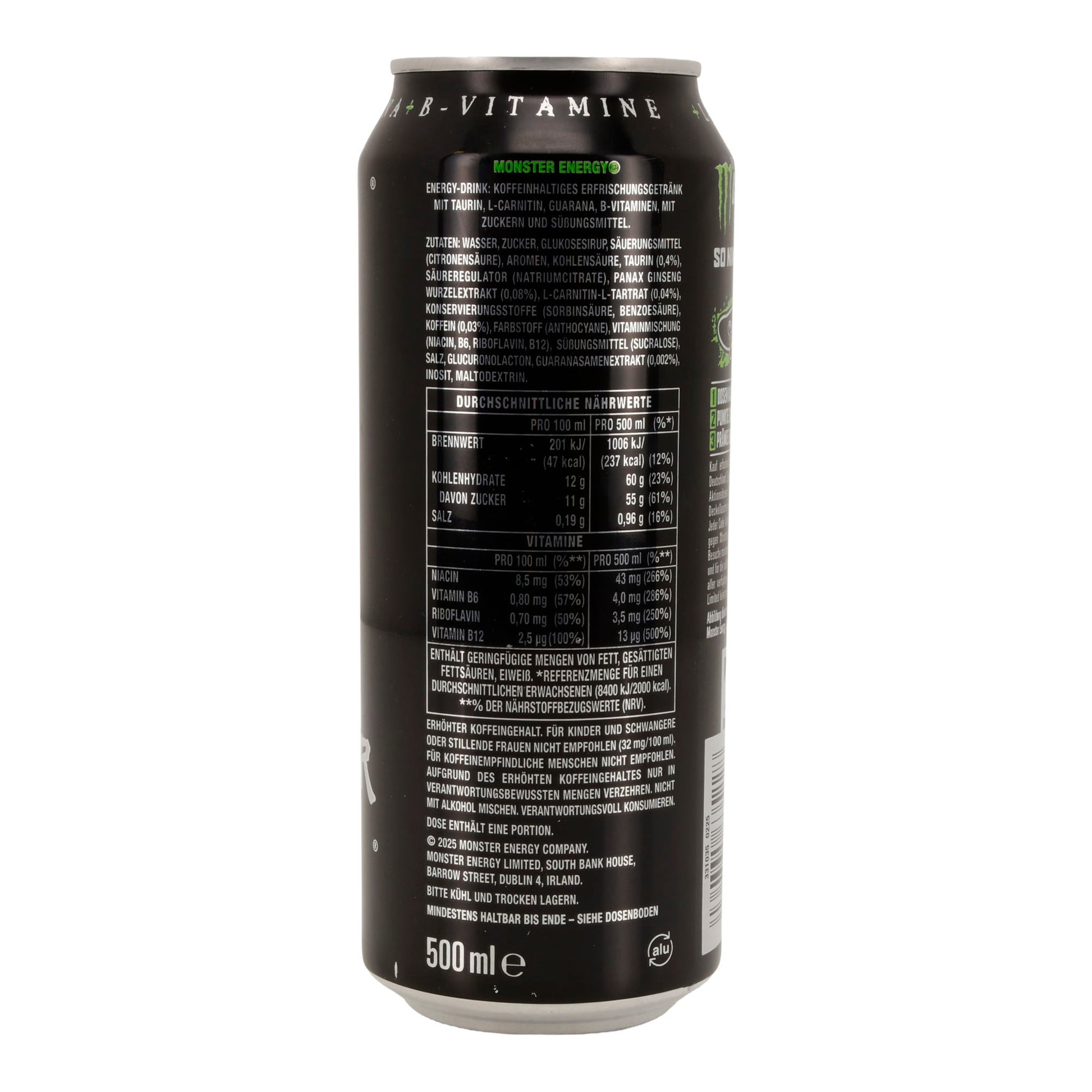 Monster Energy Drink enthält eine einzigartige Mischung aus Taurin, L-Carnitin, Guarana und Koffein, die für einen Energieschub sorgt. Die Kombination aus Zucker und B-Vitaminen unterstützt die Energieproduktion im Körper.