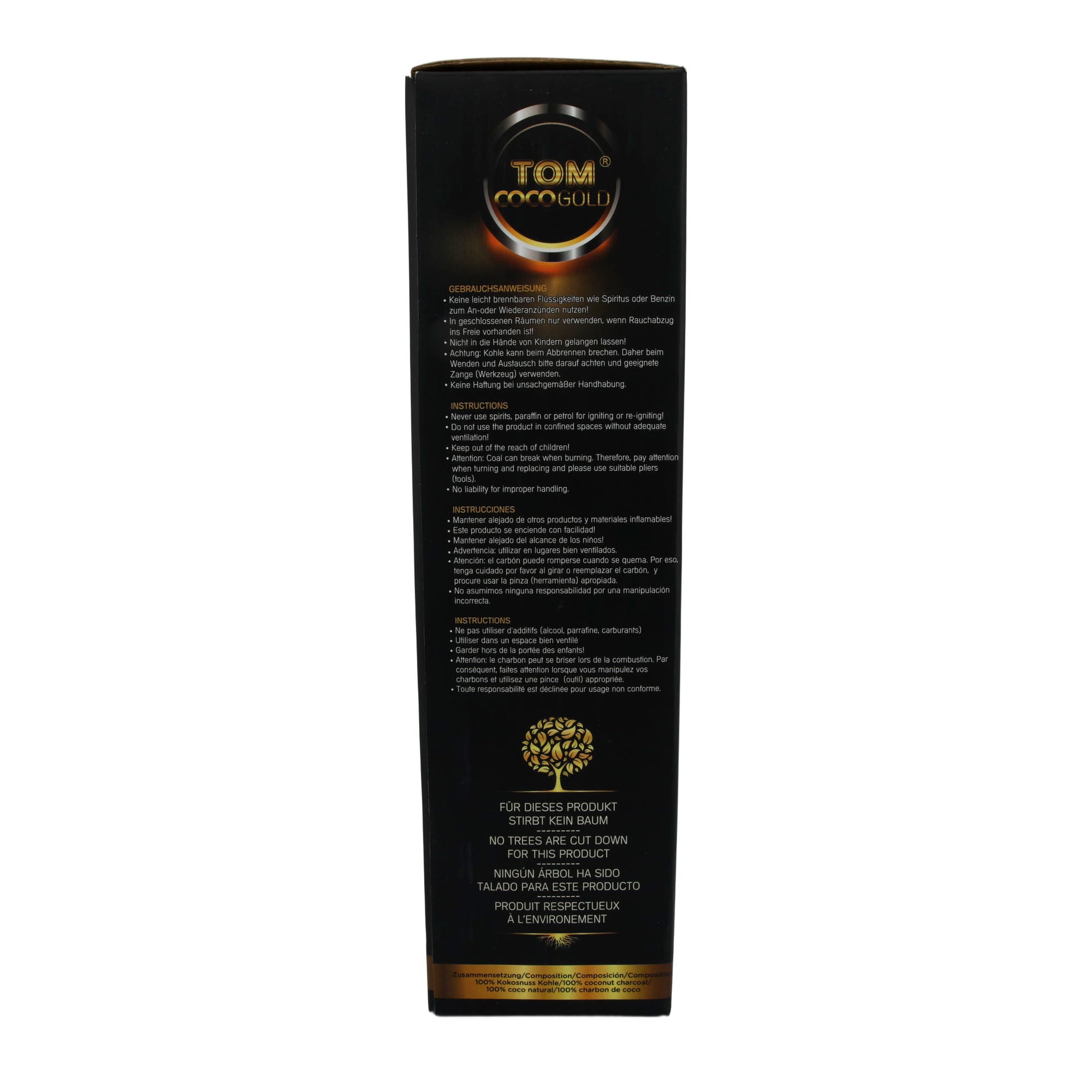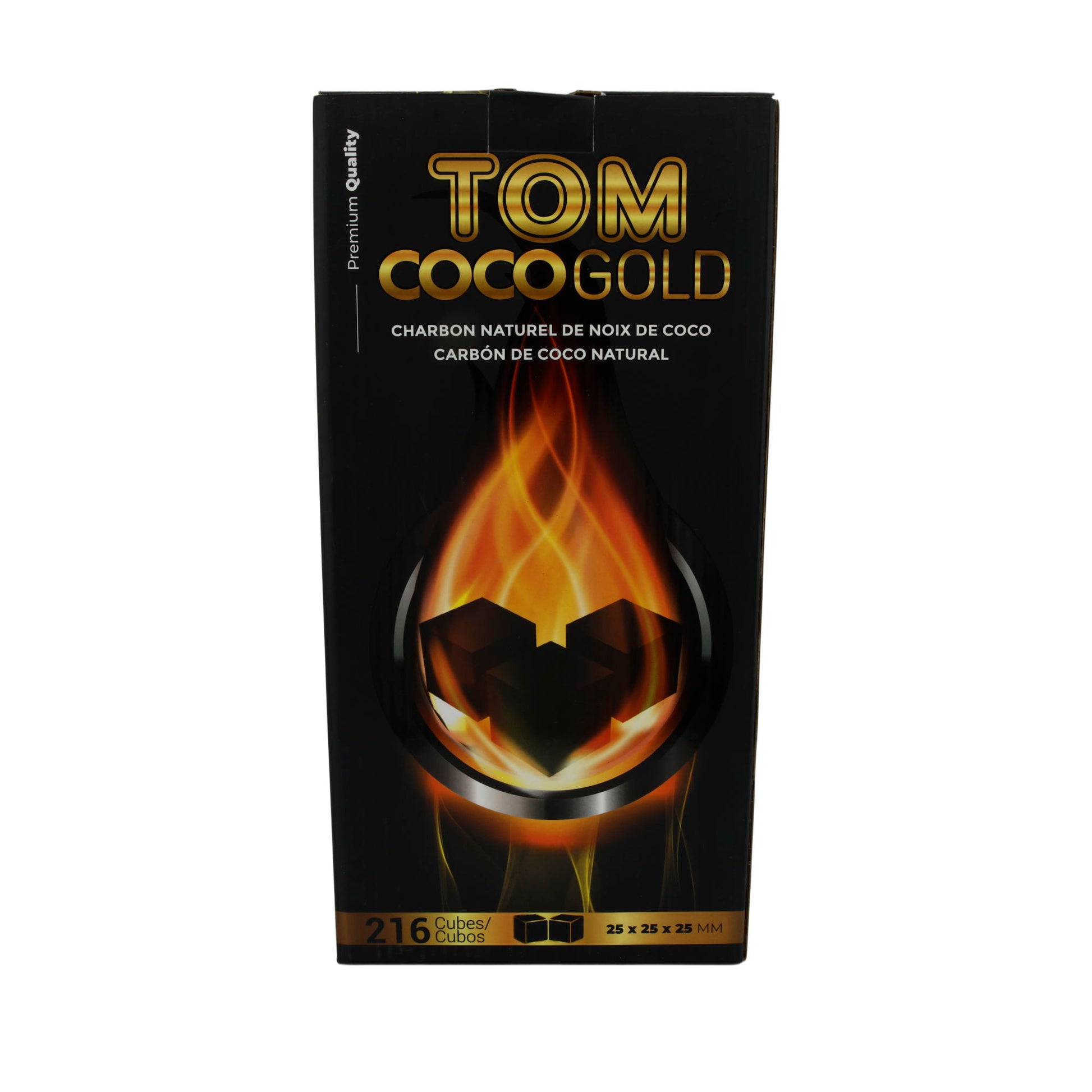 Die Naturkohle Tom Coco Gold | 216 Würfel bietet erstklassige Premium Kokoskohle für Shisha und Grill. Diese hochwertige Kohle wird aus Kokosnussschalen hergestellt und garantiert eine lange Brenndauer sowie gleichmäßige Hitze.