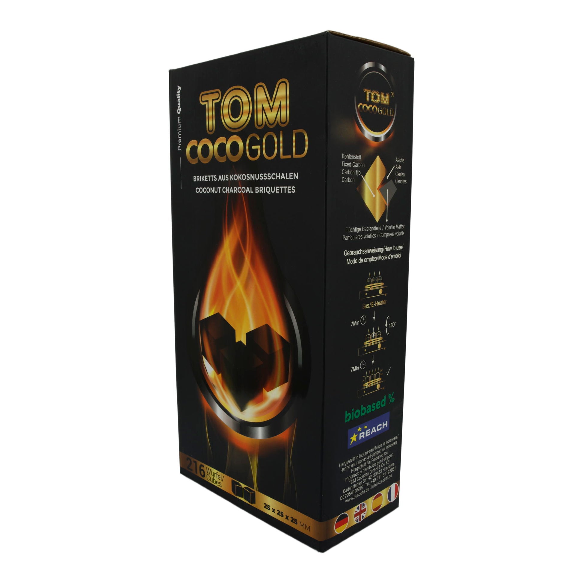 Naturkohle Tom Coco Gold | 216 Küp – Nargile ve Mangal için Premium Hindistancevizi Kömürü